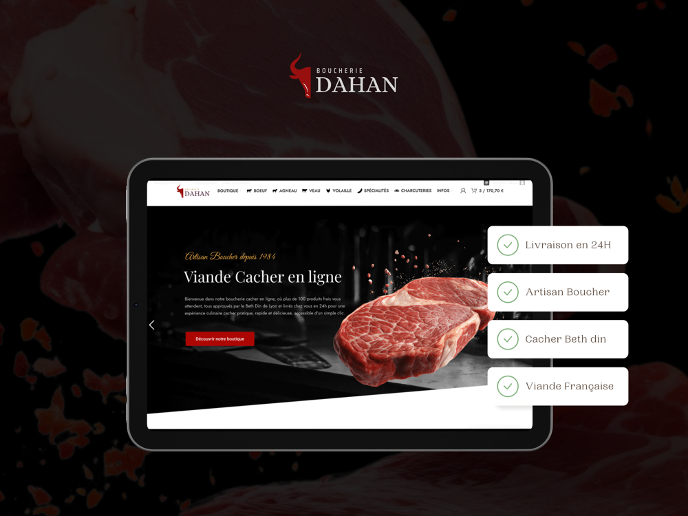 Our application opens the doors to an artisan butchery renowned for its commitment to quality and Kosher compliance under the strict control of the Beth Din of Lyon. Every product we offer is carefully selected and prepared with the utmost care, guaranteeing not only freshness but also compliance with kosher laws.