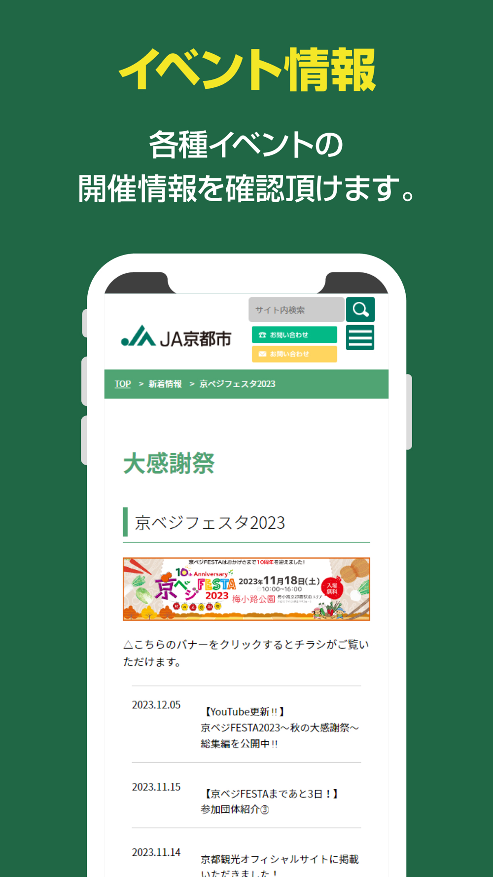 お客様と当JAが「便利につながる」ことを主眼としたJA京都市公式アプリです。