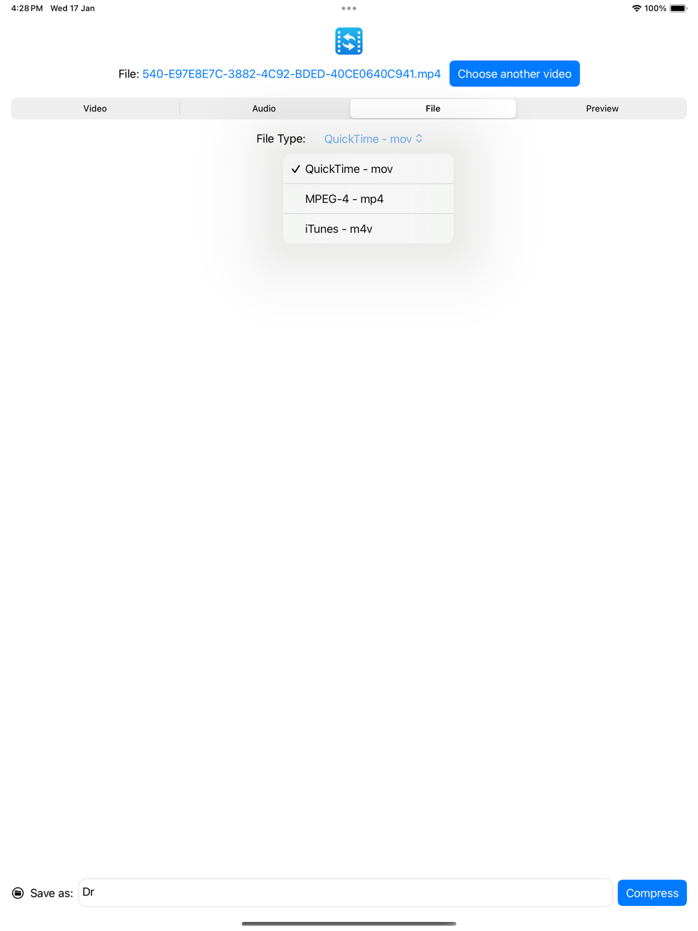 FILE TYPE - QUICK TIME - MOV, MPEG-4 - MP4, M4v