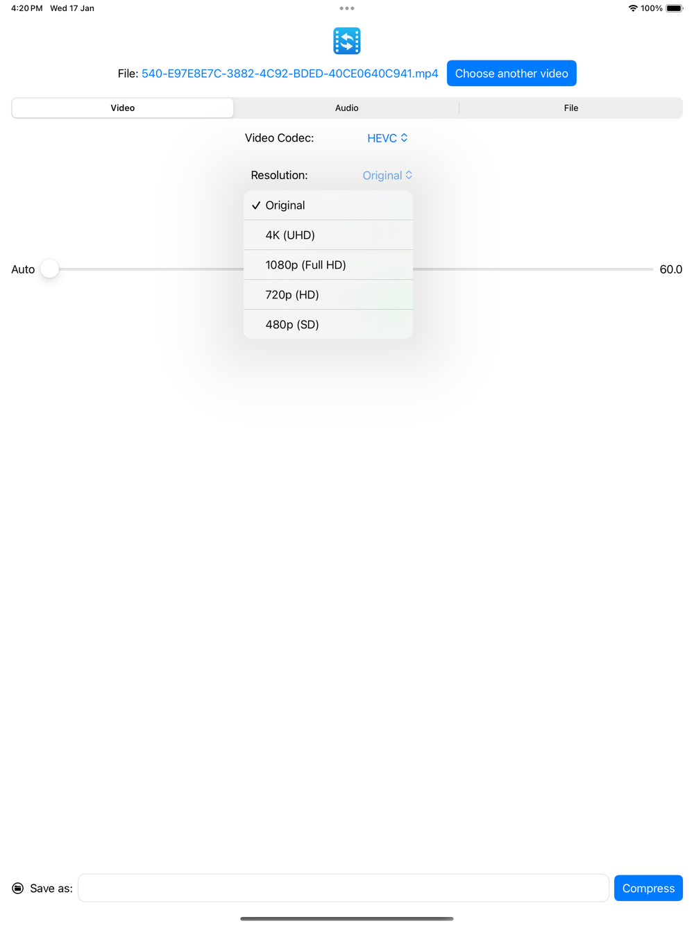 RESOLUTION - Original, 4K (UHD), 1080p (Full HD), 720P (HD), 480P (SD)