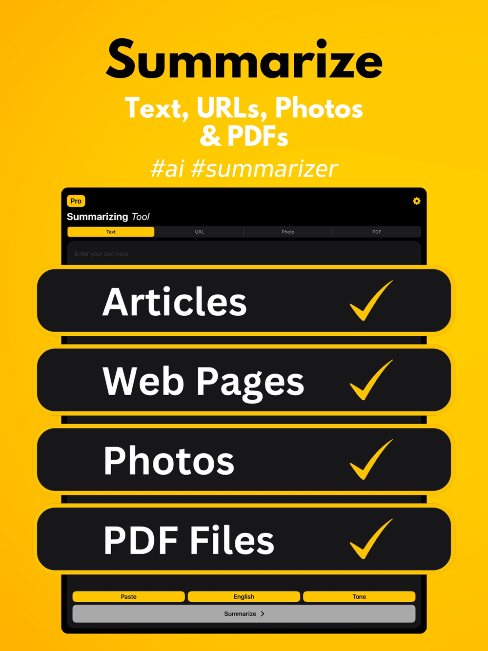 From text to URLs, photos, and PDFs, Summarize handles it all.