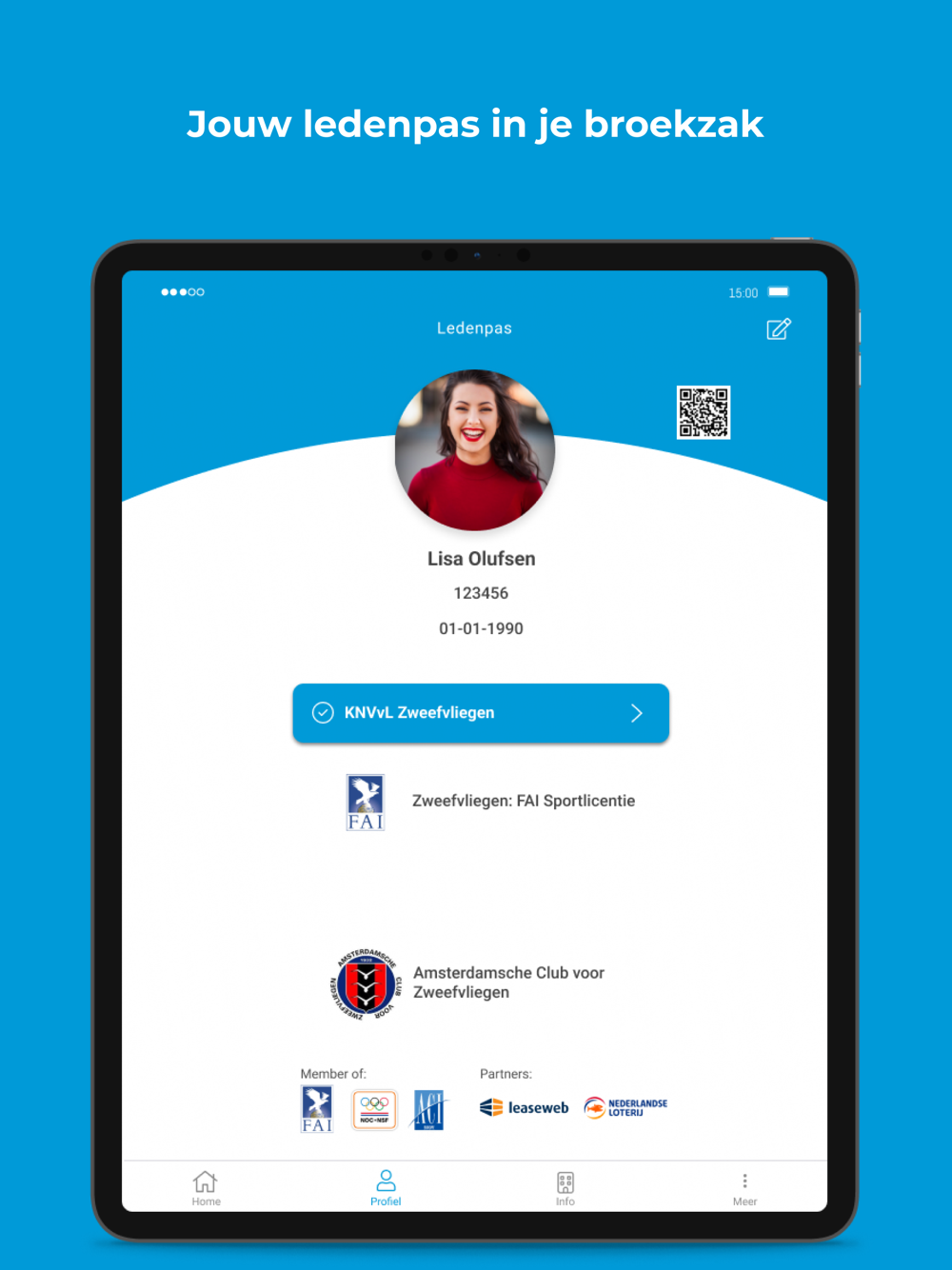 - Persoonlijke ledenpas met abonnementen, diensten en licenties