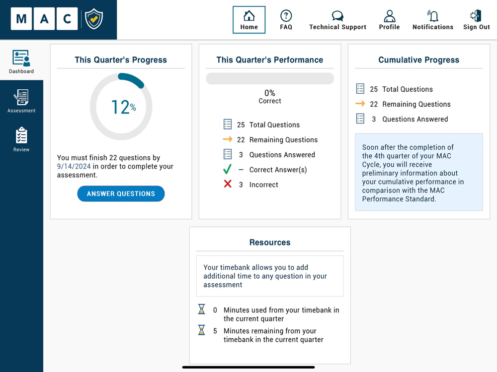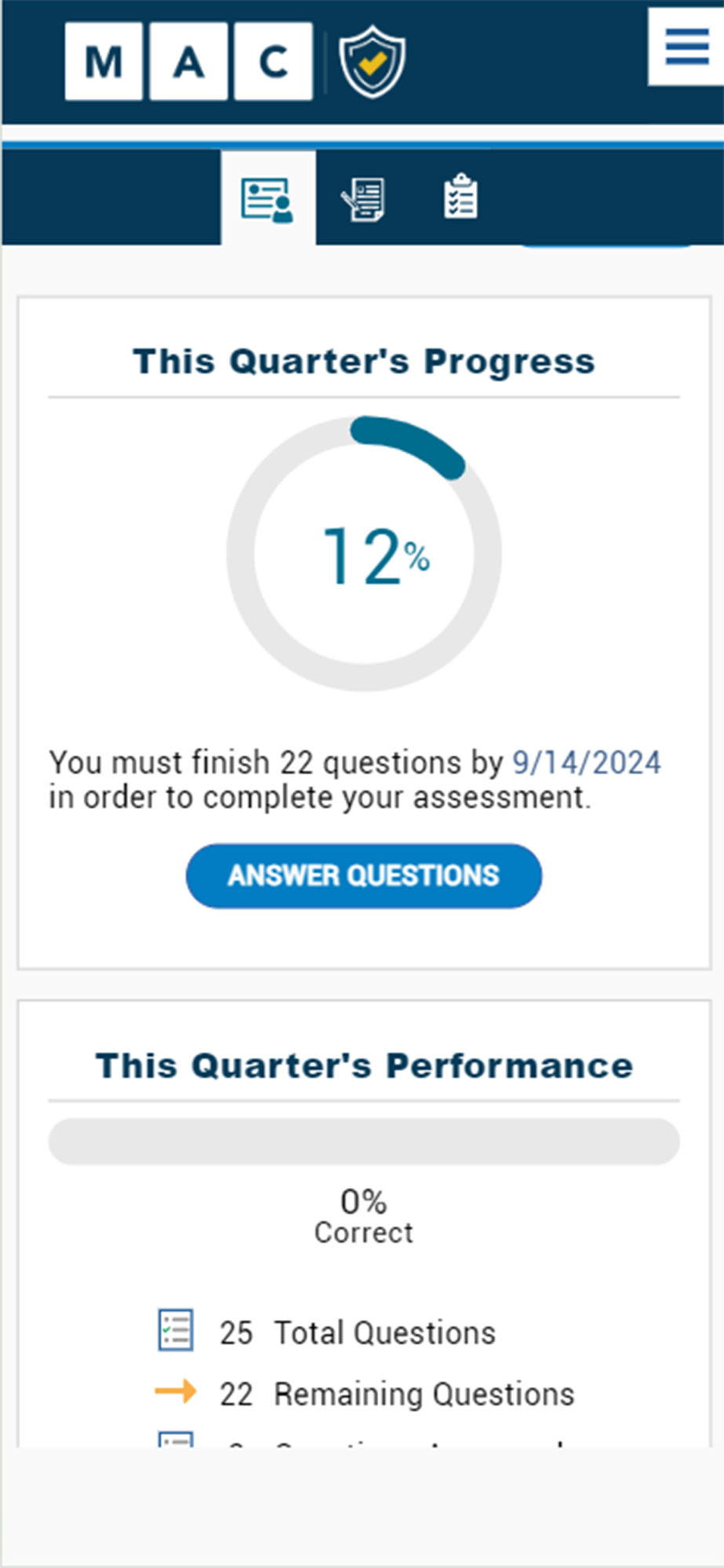 MAC Check is dynamic and convenient, and the mobile app allows CRNAs to leave the assessment and come back at any time within a quarter and resume where they left off – as long as the assessment is completed within the designated three-month period.
