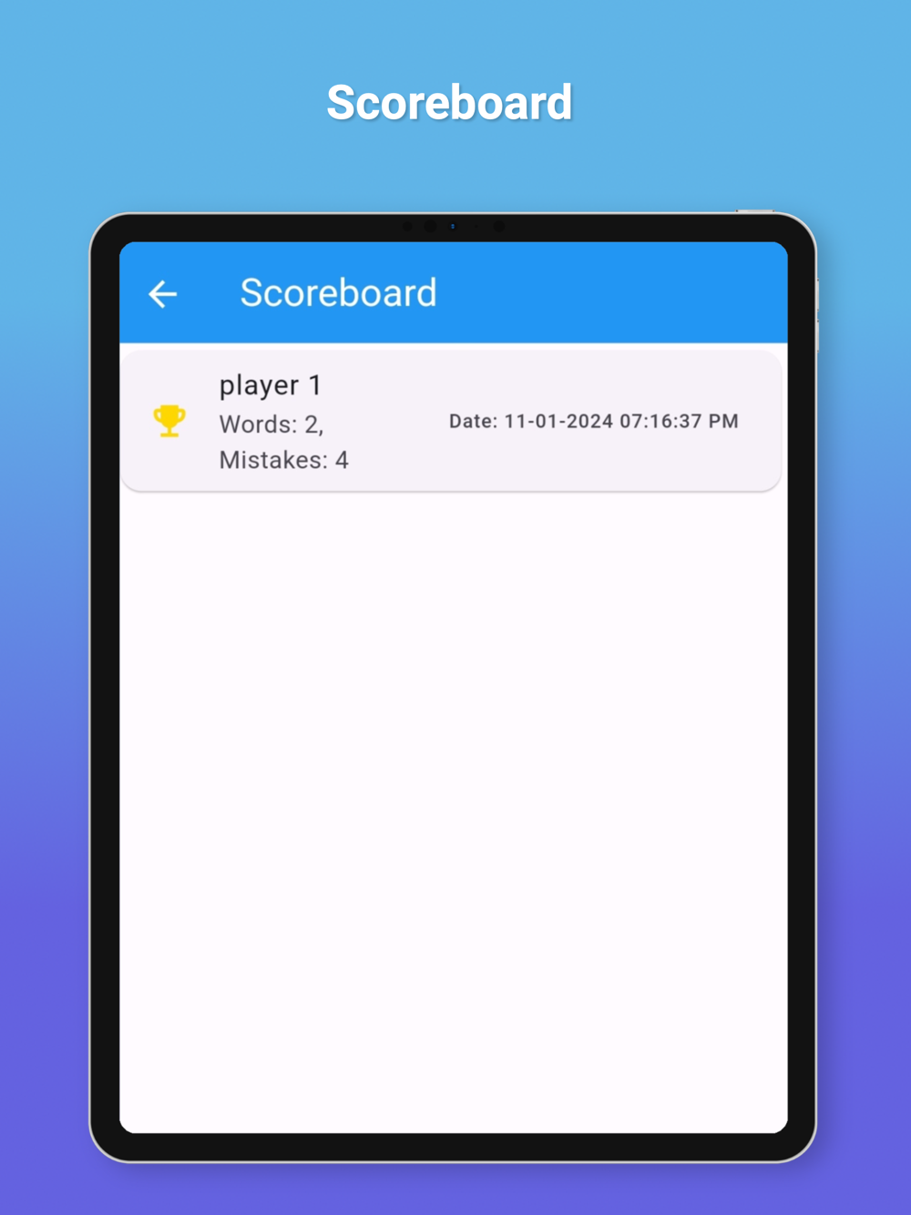 Scoreboard System: Keep track of your linguistic prowess! The scoreboard records your correctly guessed words and the mistakes you've made, helping you monitor your progress.