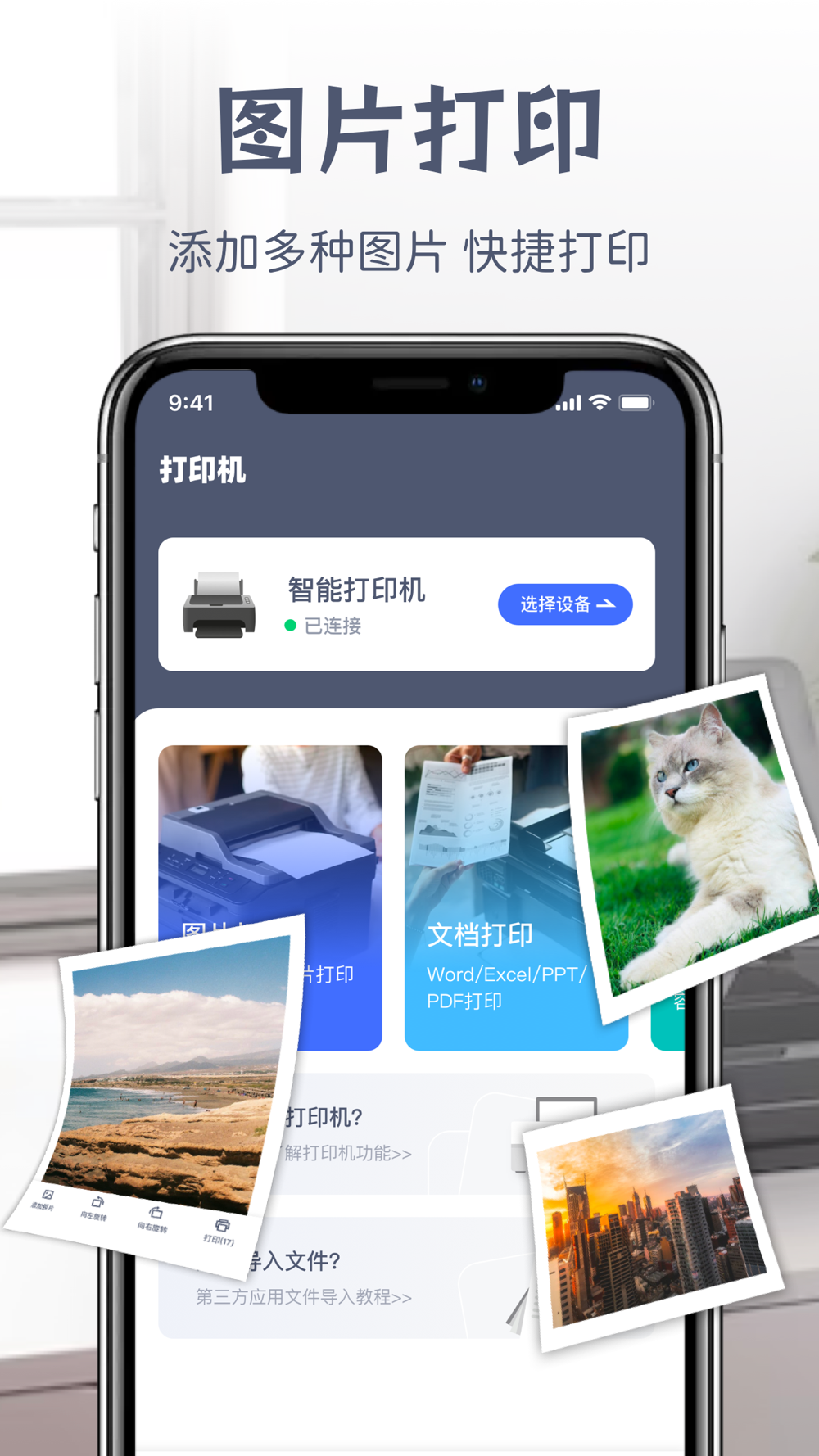 文件管理:可以从第三方APP导入任何文件存储在打印机APP进行管理;