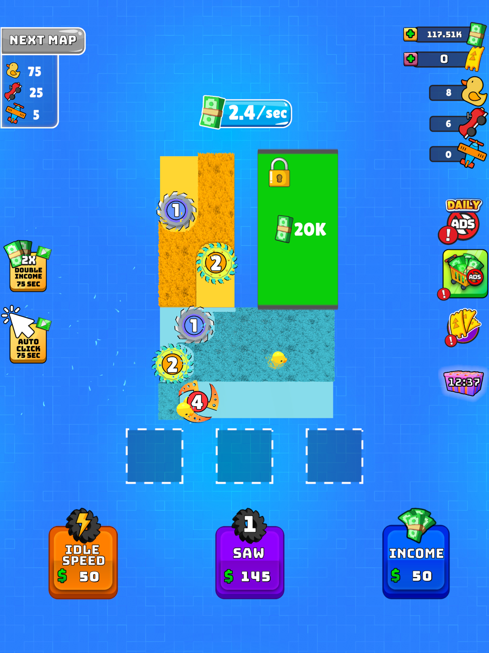 Now, what to do with all that cash? Well, it's all about upgrades and expansion. Buy more gears, make them faster, or increase how much they earn you. It’s all about making your grass-cutting empire bigger and better.