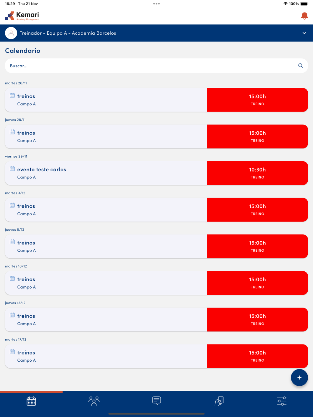 Con Kemari podrás crear la base de datos de tu club deportivo incluyendo a directivos, staff, jugadores y familia. La información de tus equipos la tendrás a un solo click y al alcance de tu mano.