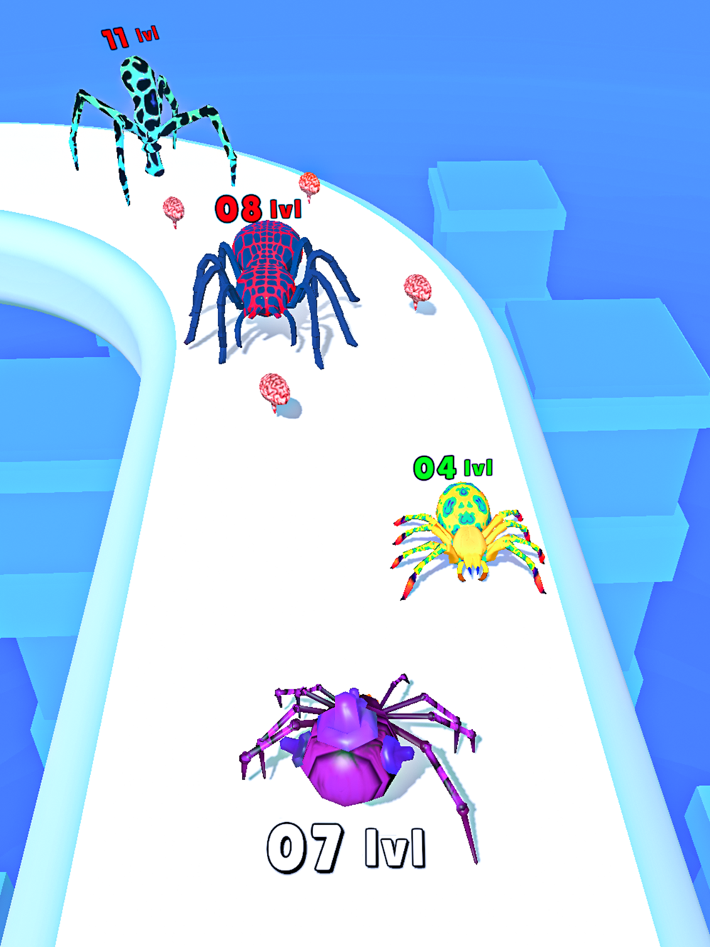 Embark on a journey as a tiny spider, aiming to become the mightiest of them all in this captivating hyper-casual mobile game. In Spider Evolution Run, your adventure starts on a vibrant running track, where every step is a leap towards becoming a stronger and larger spider.