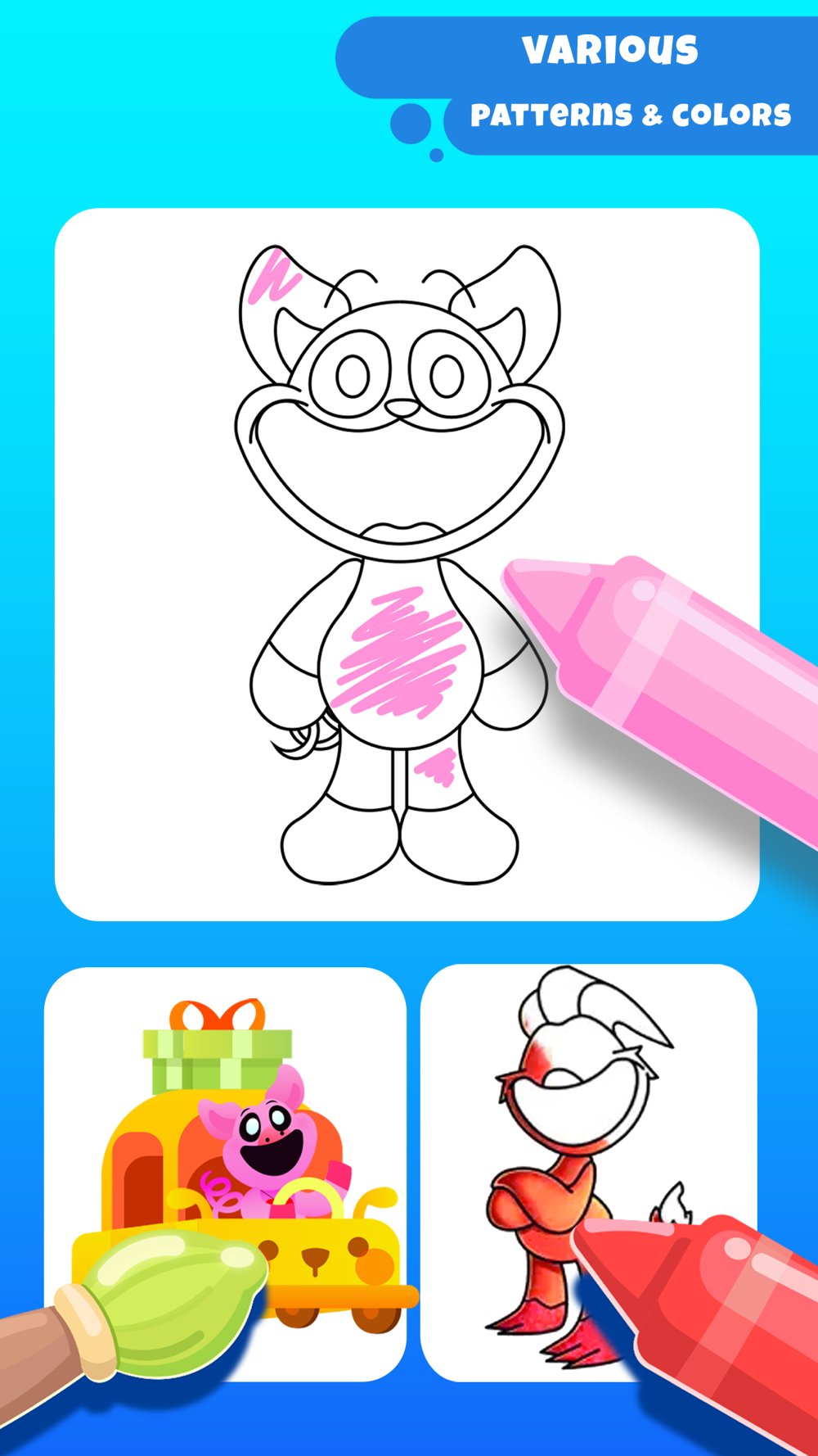 With this relaxing coloring game you can color your favorite character by simply taping on the white parts.