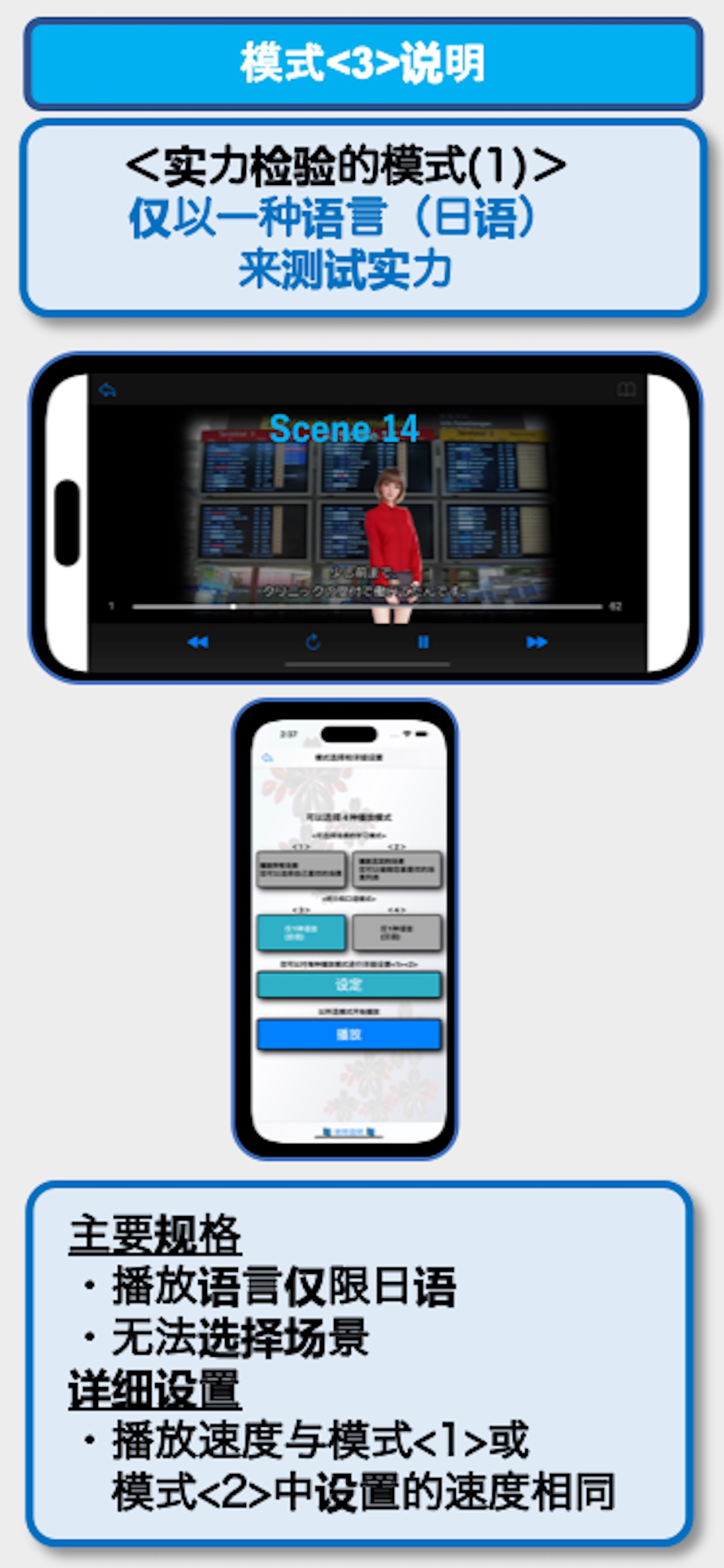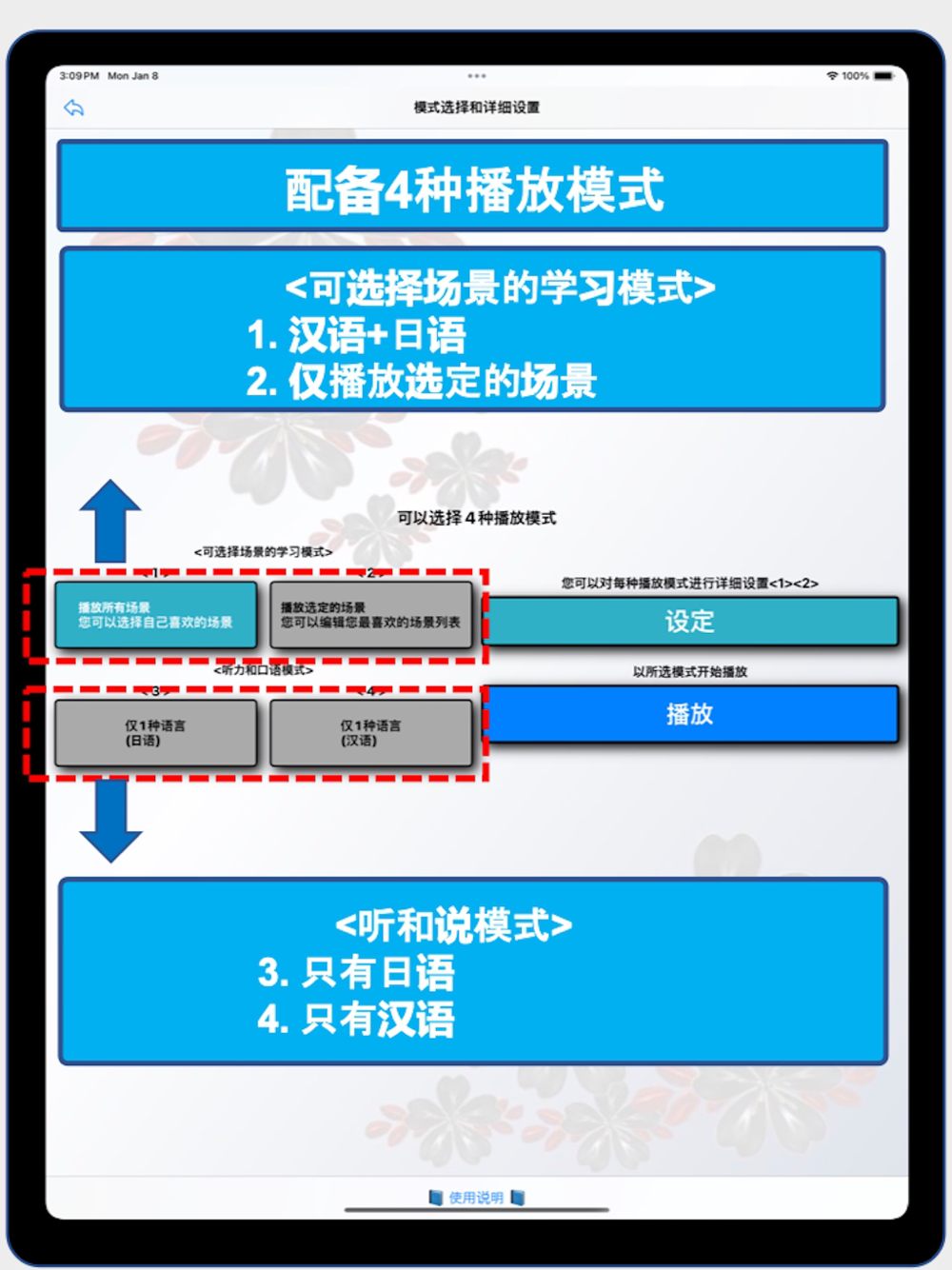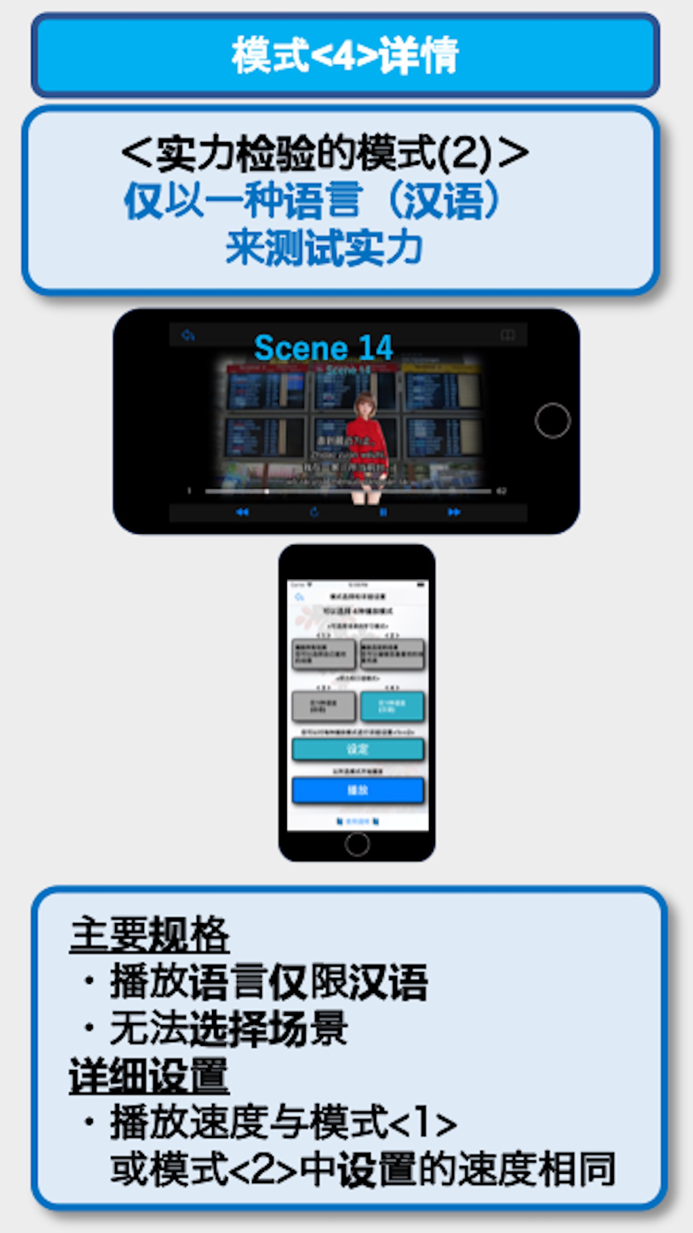 ・设置汉语、日语的播放速度为x0.5倍至x1.5倍:以适应个人实力的自选速度进行学习。