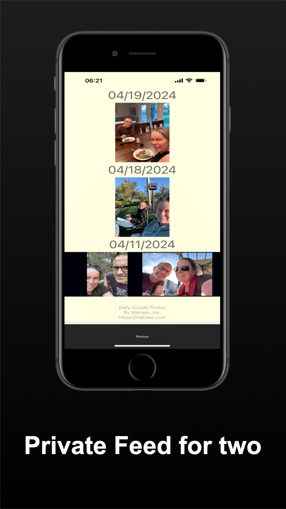 Welcome to 'Daily Couple Photos' – an intimate photo app uniquely designed for a couple. Whether you're side by side or miles apart use this private space for you and your partner to chronicle your days together through photos. Each day, both of you can take and upload one special photo - either together or separate - creating a shared visual photo roll unique to your relationship.