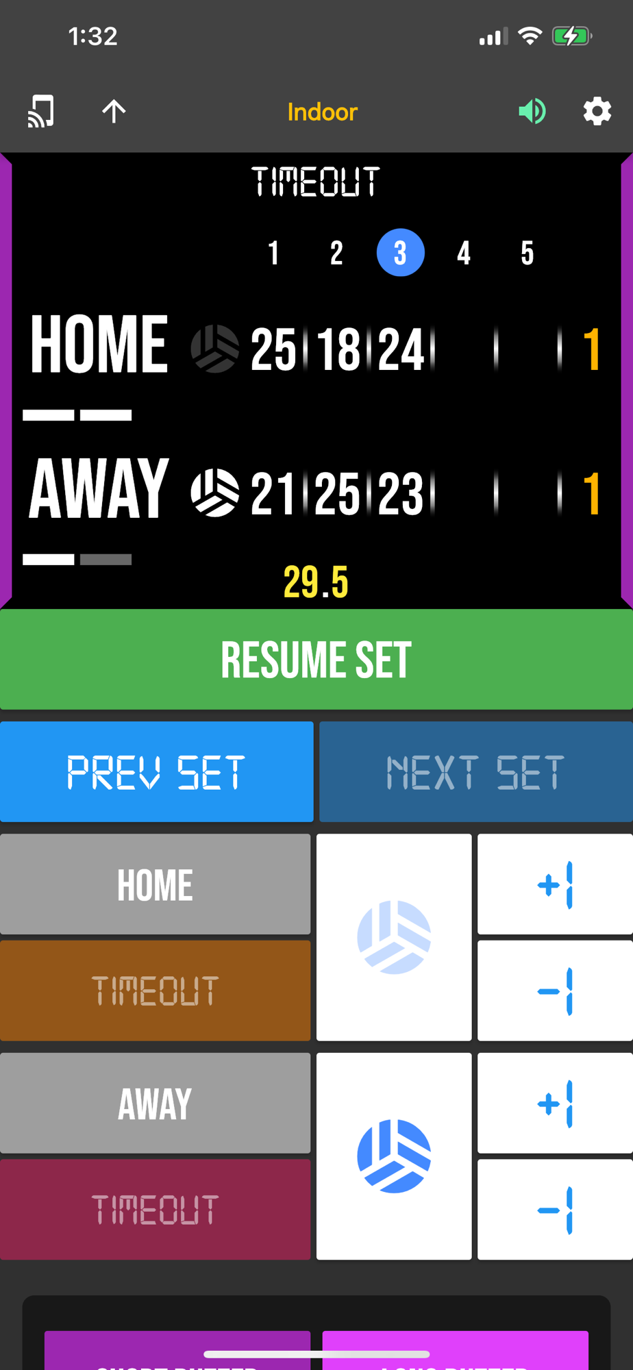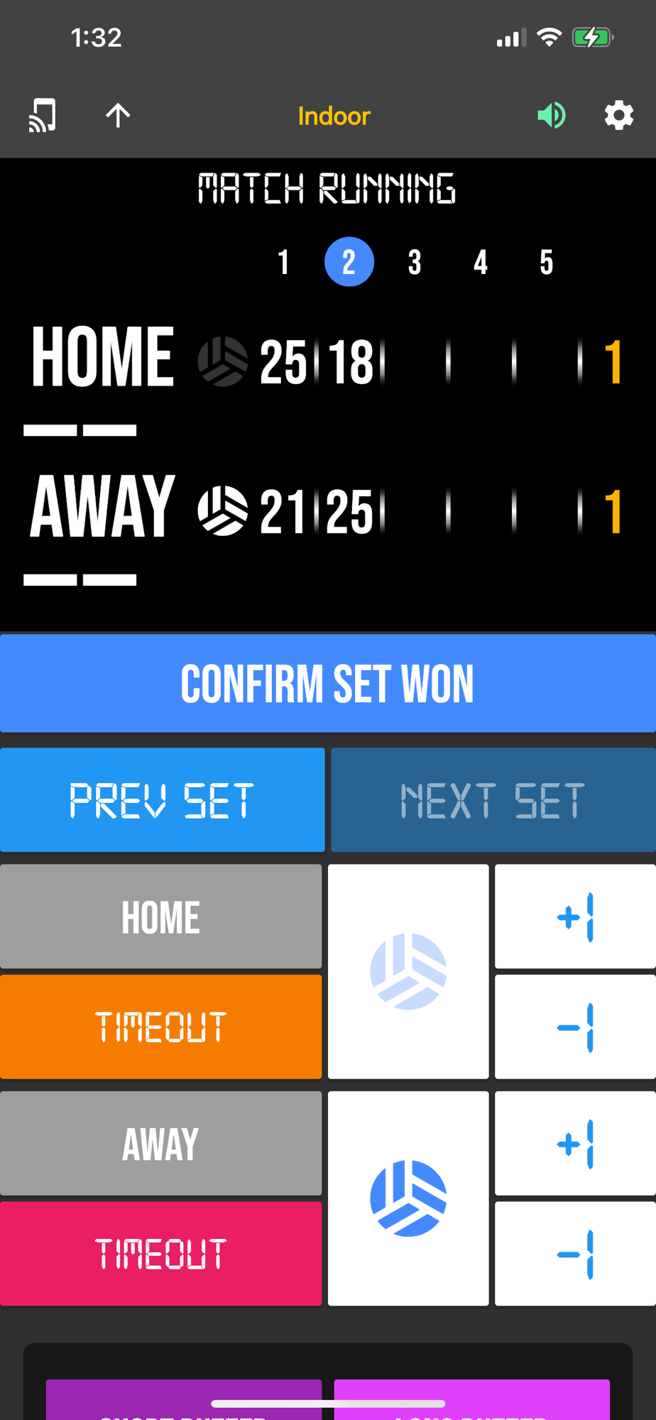 The BT Controller is a complimentary app meant to remotely control supported BT volleyball scoreboards, and score camera devices. The app synchronizes the time and score on all these supported devices. The interface is extremely clean and intuitive, everything is directly touch or swipe based. Clearly labeled controller buttons are also added for those that prefer a button interface. The BT Controller app is easy to learn and new users can be running the time and score for a volleyball game in no time.