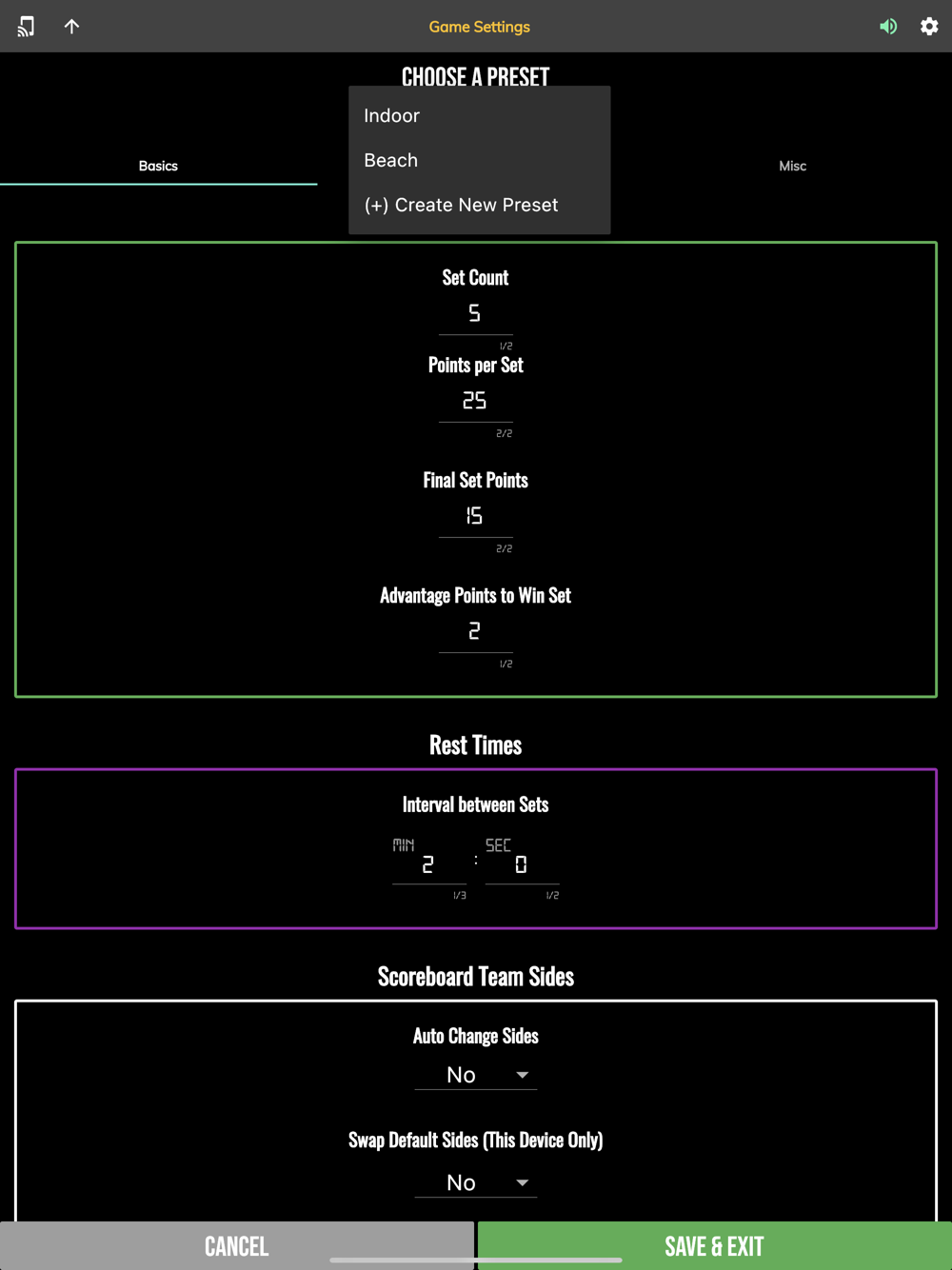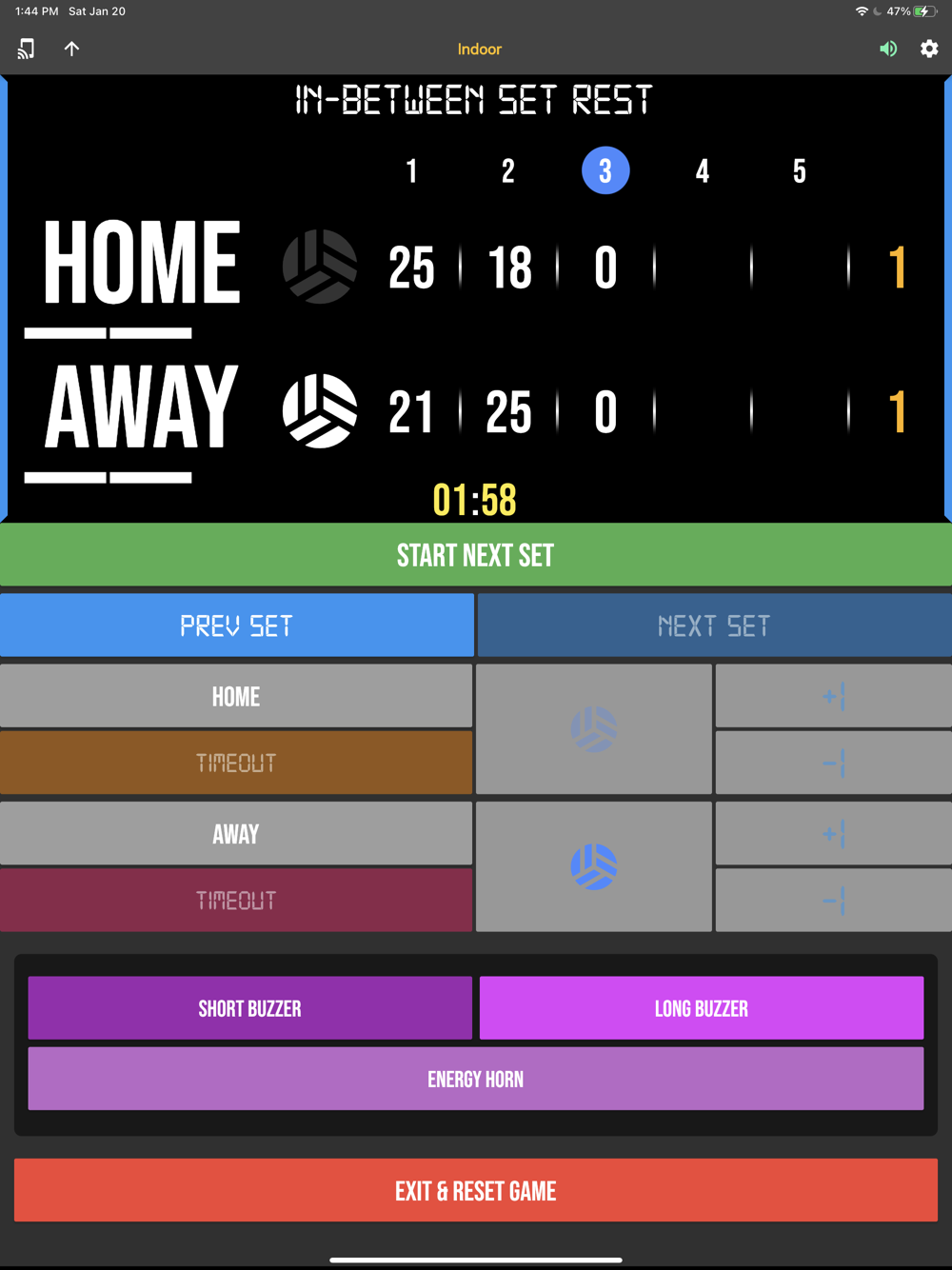 - Convenient timers: pregame timer, in-between set timer, timeout timer