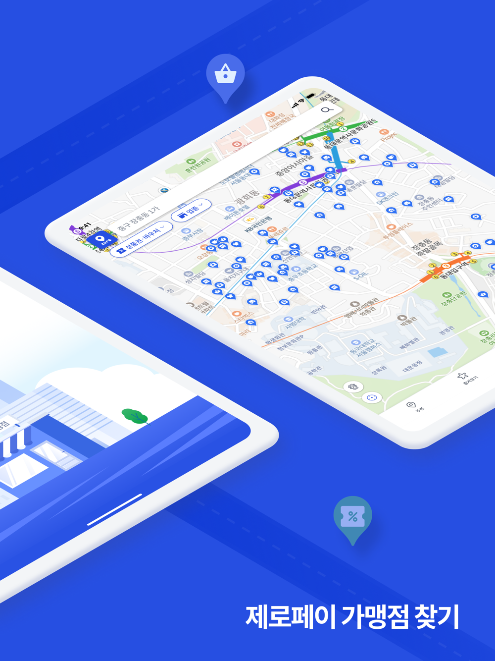 - 제로페이맵 홈에서 바로 가맹점과 상품권/바우처를 확인할 수 있어요.