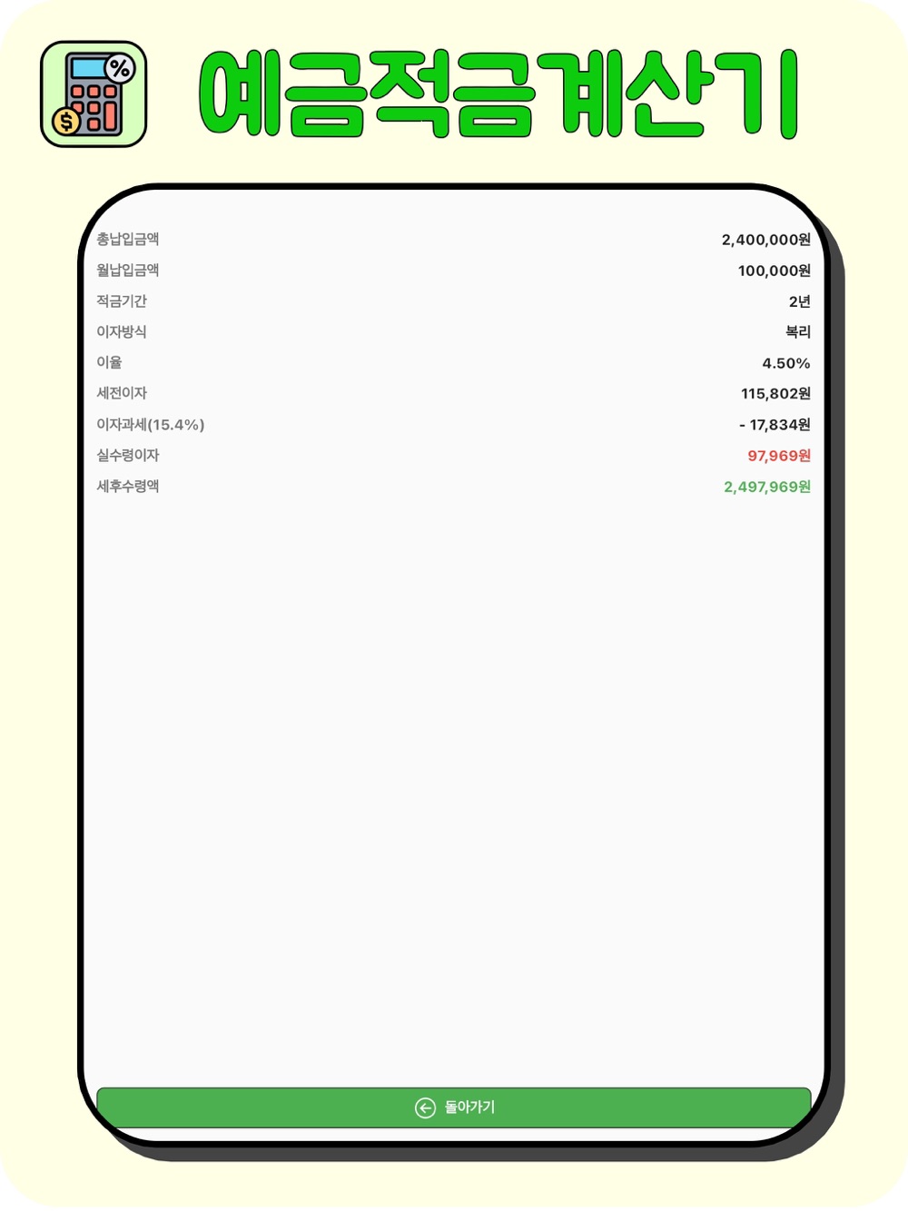 따른 이자(이자세금 계산)를 자동으로 계산해주는 계산 어플입니다.