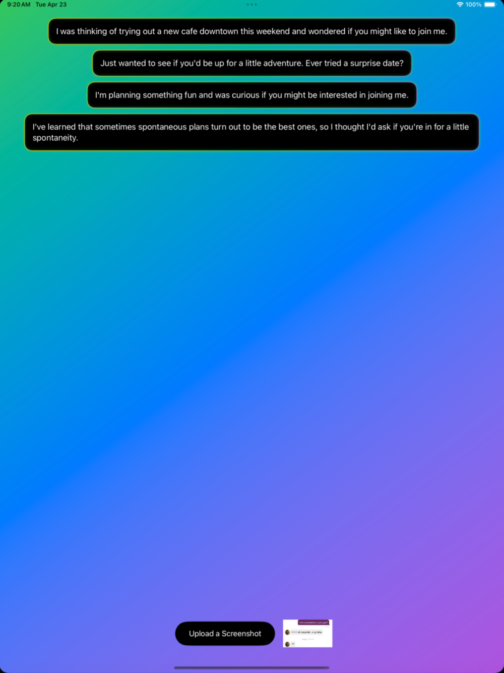 Powered by cutting-edge artificial intelligence technology, Wings AI is designed to empower users across various messaging platforms, from dating apps to social media and professional correspondence. It understands the intricacies of effective communication and is committed to helping you master the art of conversation.