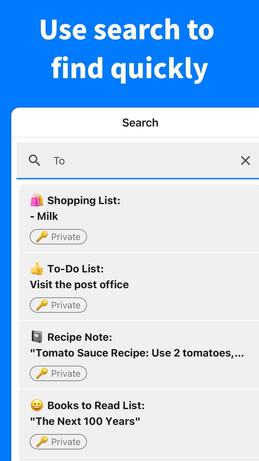 필요한 정보에 빠르게 접근하기 위해 모든 노트를 즉시 검색합니다.