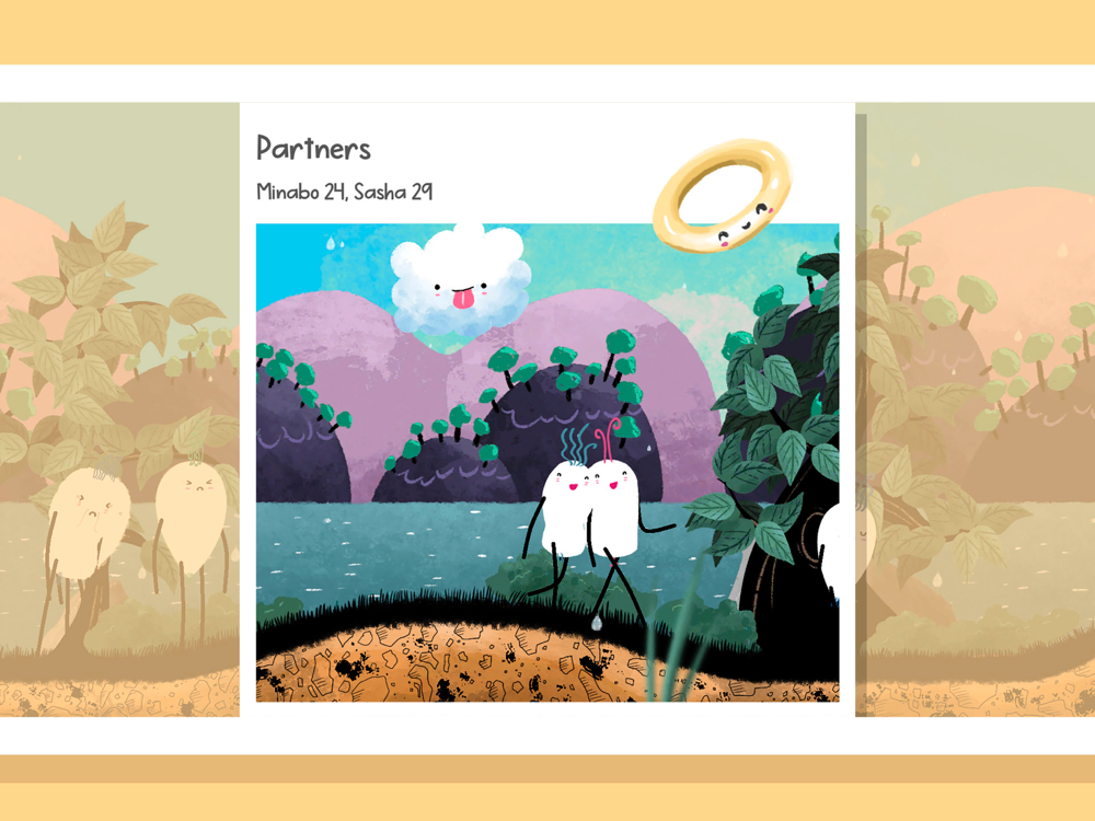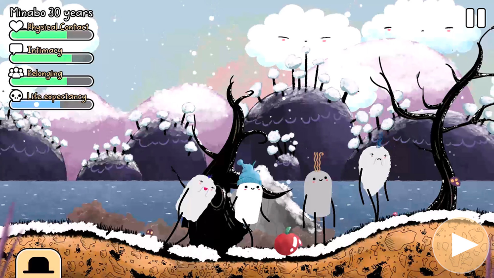 Minabo - A walk through life is a social simulation game where you walk the path of life while your turnip grows and thrives (or not) in its social relationships.