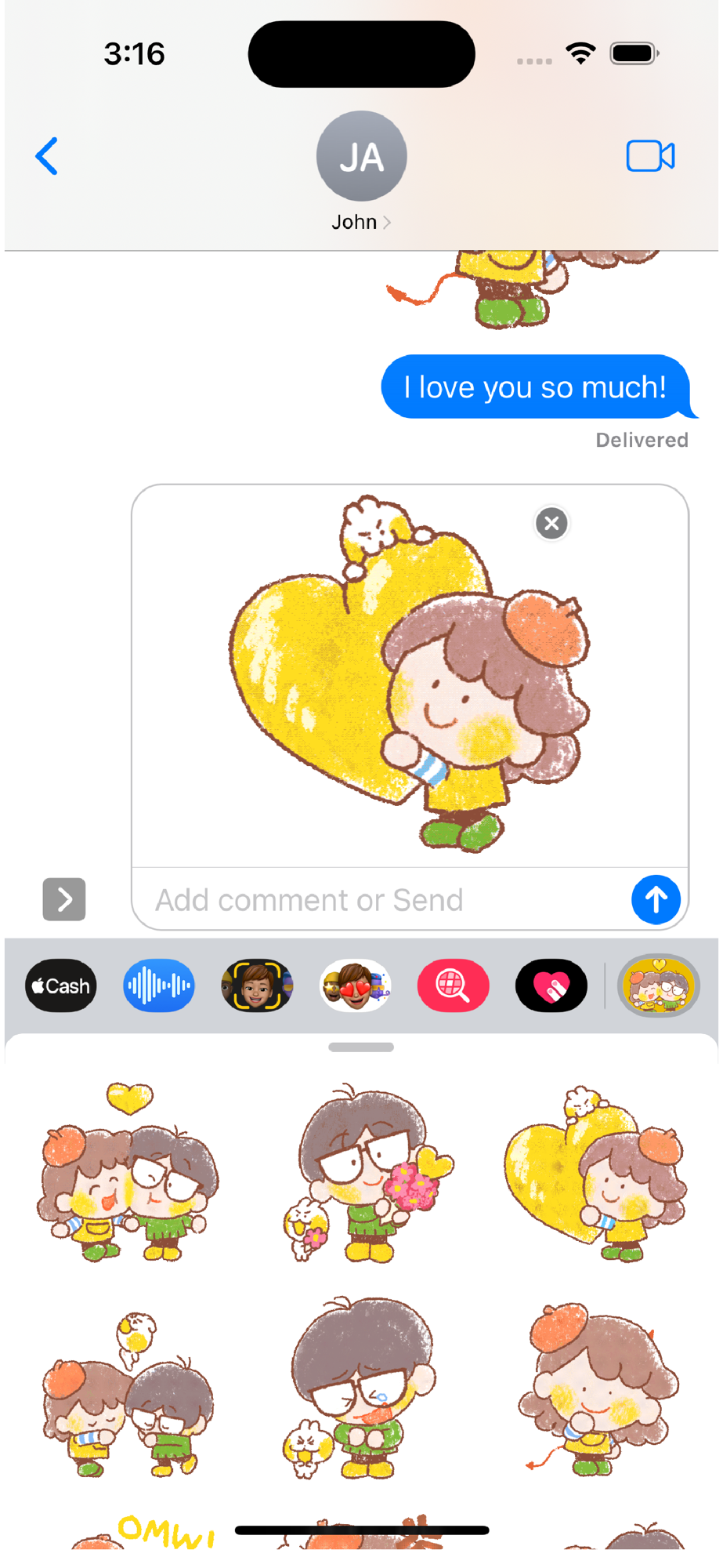 Animated sticker set featuring liliuhms' beloved couple "two bubs." Enjoy using this sticker pack to showcase your many emotions, and the love between you and someone dear to you.