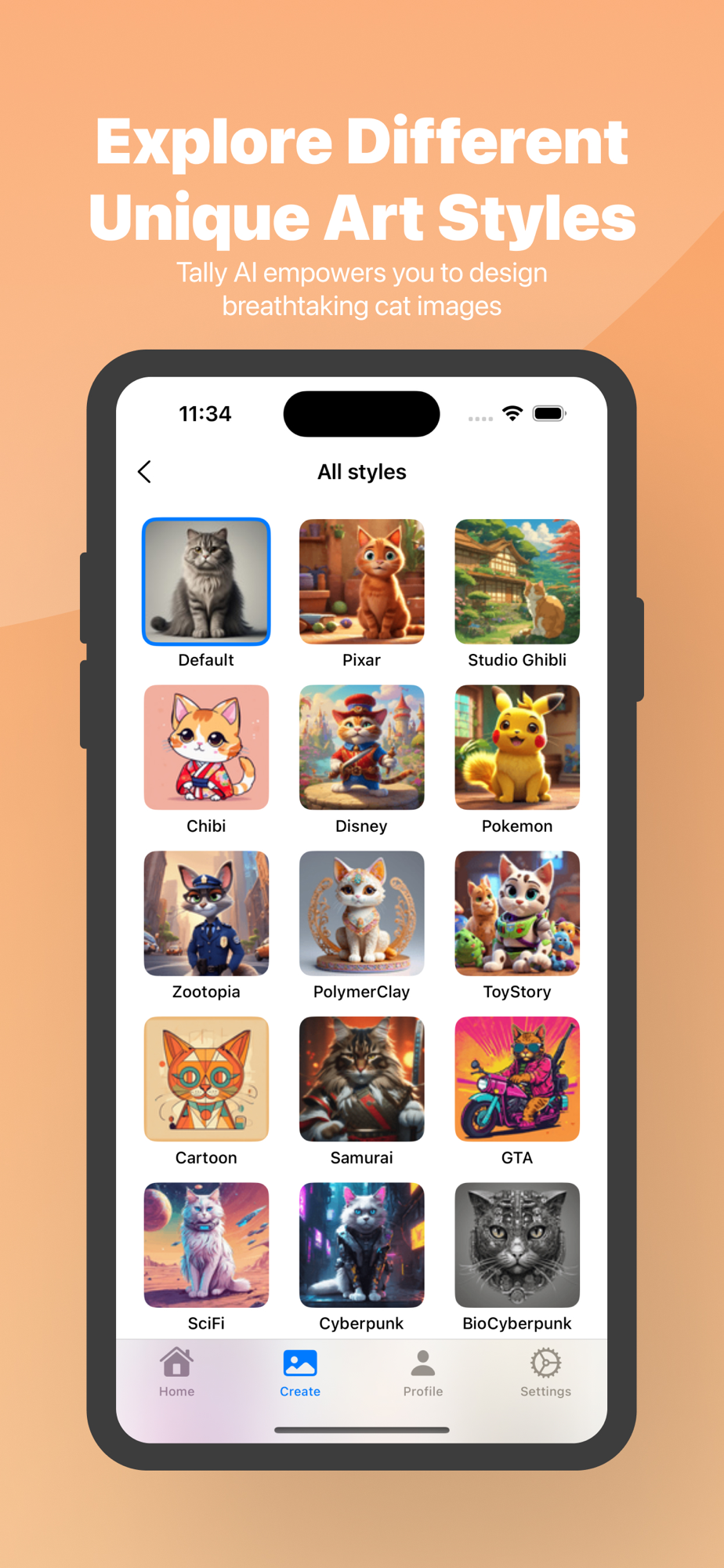 Transform your imagination into stunning AI artwork with Tally AI. Our app brings your feline friend's moments to life in styles you've never imagined possible. Just type a text prompt, pick an art style, and watch as magic unfolds.