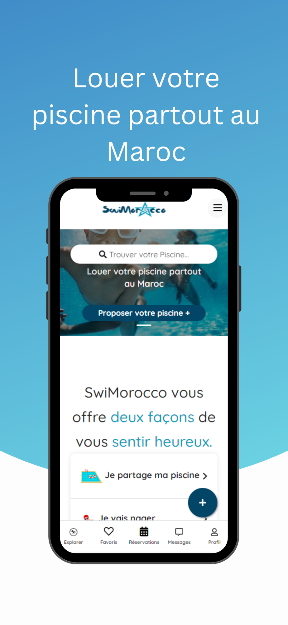 Bienvenue sur Swimorocco, l'application innovante qui transforme votre expérience de baignade en mettant à votre disposition une sélection de piscines privées à louer entre particuliers au Maroc. Plongez dans le luxe de la détente et profitez de moments rafraîchissants dans des piscines exclusives, le tout à portée de main grâce à notre plateforme conviviale.