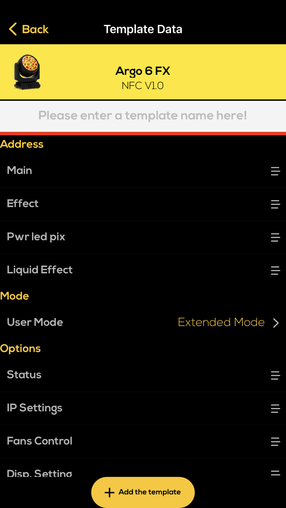 The AYRTON Mobile Manager Application is designed to allow users the ability to view and change fixture settings (address, universe, user mode, network settings, etc.), as well as view other important system information (software version, serial number, total life/LED hours, LED engine type, and error records). With NFC technology, the user is granted access to these resources utilizing any NFC enabled iPhone device, while the fixture requires no internal battery or external power.
