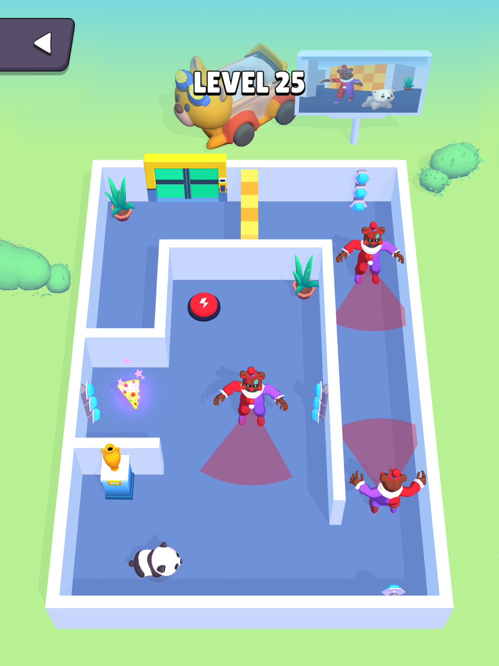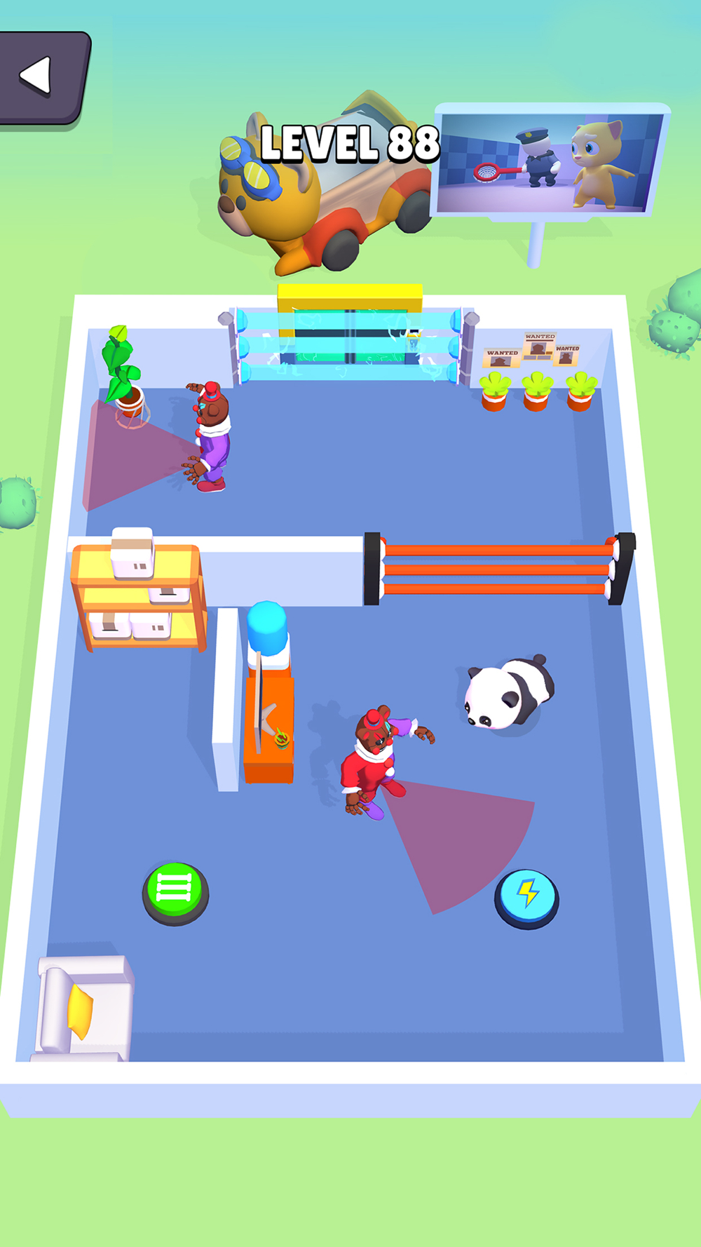 - Buttons: Press the buttons to disable electric traps or remove barriers that are blocking your panda pet's escape. You can also activate a trap to give the guards a surprising shock!