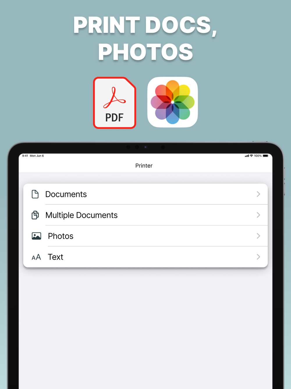 Our Printer app makes it easy to print documents.You can print from your photo gallery, iCloud and clipboard. It works with many types of files like PDF, PNG, JPEG. Get our app today and print without any trouble!
