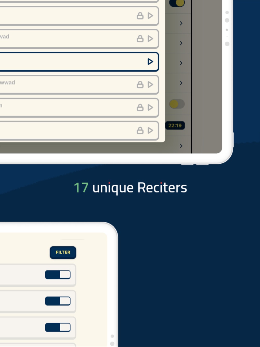 • Quranic Recitations: Access audio from 17 renowned Quran reciters to enhance your learning