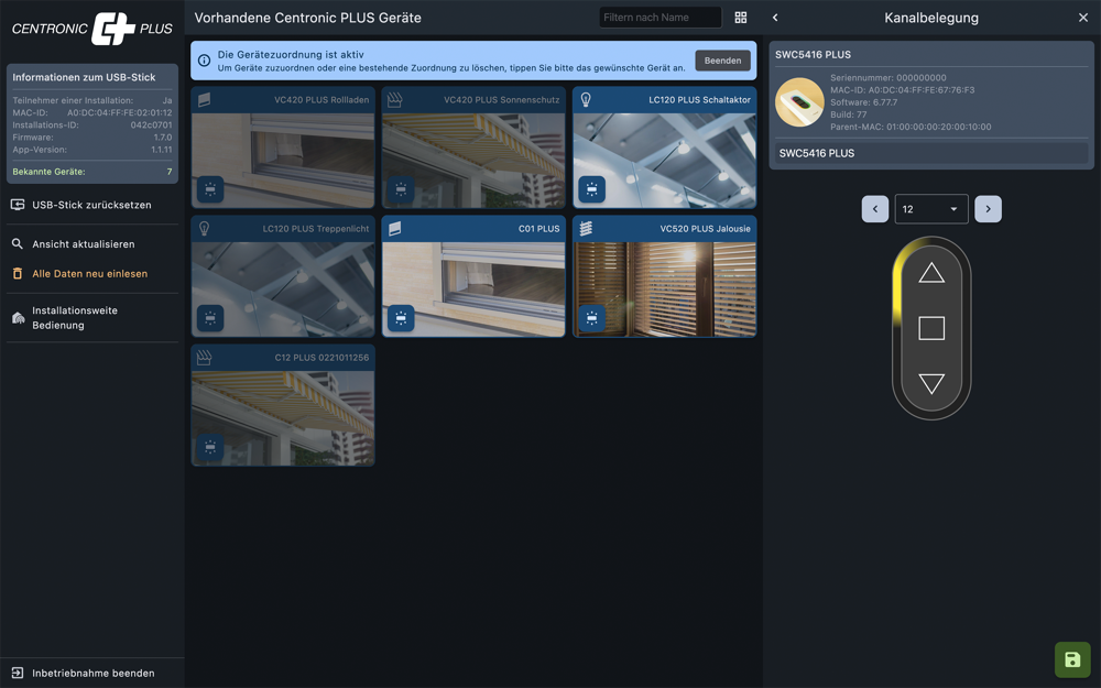 NOTE: To use the CentronicPLUS functionalities, a compatible CentronicPLUS USB stick is required. This can be purchased from Becker-Antriebe. Such a USB stick is usually also part of the delivery scope of a CentralControl CC41.