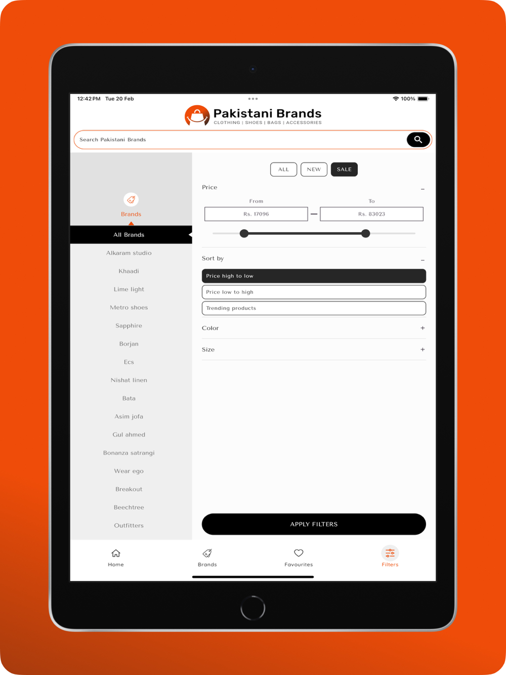 Discover the ultimate fashion shopping experience with "Pakistani Brands," your all-in-one online destination for Pakistani fashion and clothing brands. This convenient platform eliminates the hassle of searching for each brand individually by featuring an impressive array of Pakistani brands in one place. From trendy clothes and fashionable footwear to stylish eyewear, exquisite fragrances, elegant bags, and beautiful jewelry, "Pakistani Brands" caters to all your fashion needs. Stay effortlessly updated with the newest fashion trends and collections, as the app regularly updates its offerings. Never miss out on a sale or discount with comprehensive listings of ongoing promotions and discounts across various brands. The app also offers a personal wishlist feature, allowing you to save your favorite items for later or keep an eye on them for upcoming sales or discounts. With intuitive search and sort filters by brand, collection, sale, price, size, and color, "Pakistani Brands" ensures a smooth and hassle-free shopping experience for users.