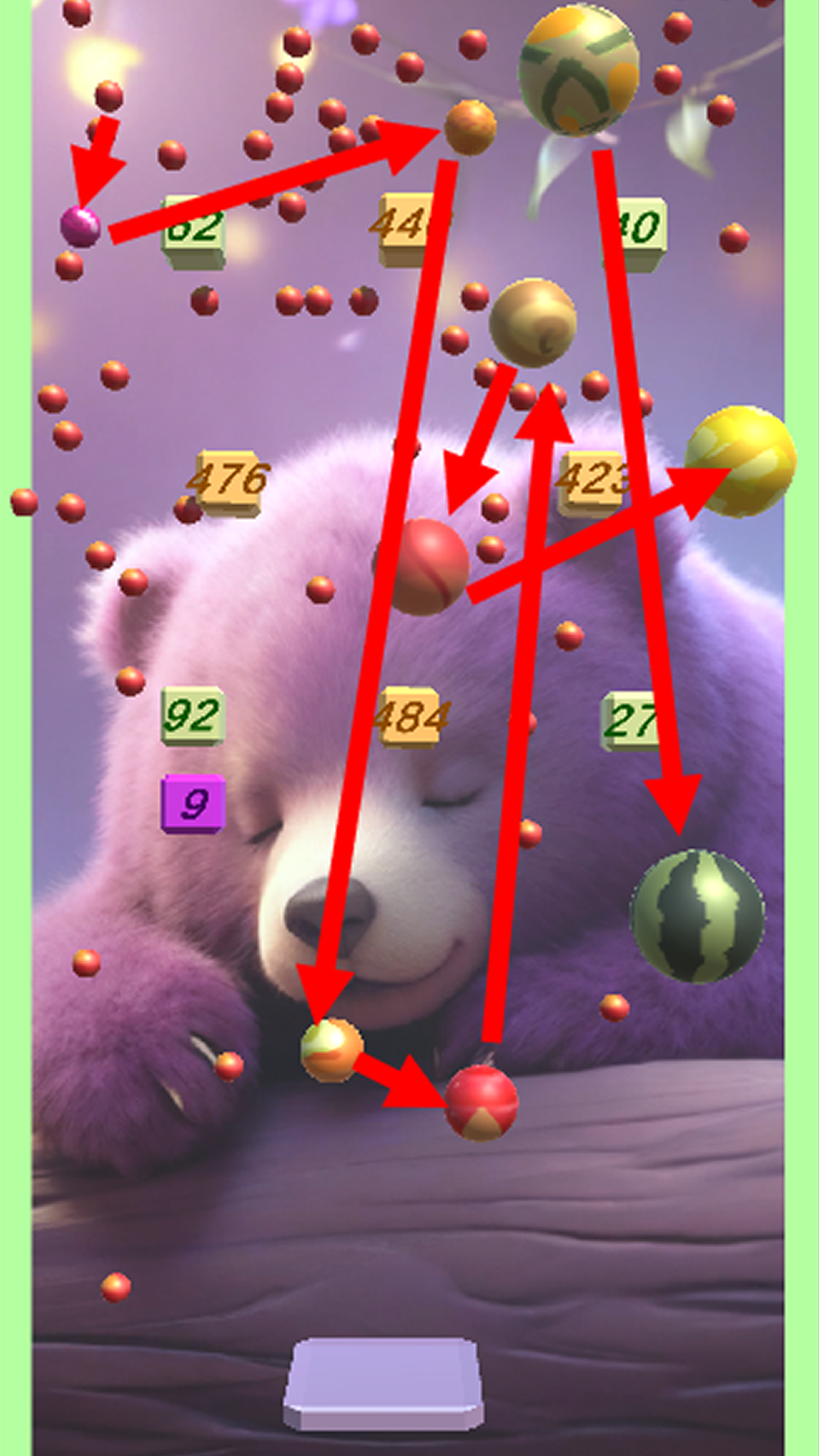 The size and number of balls left in the screen will give you a chance to get a large number of points!