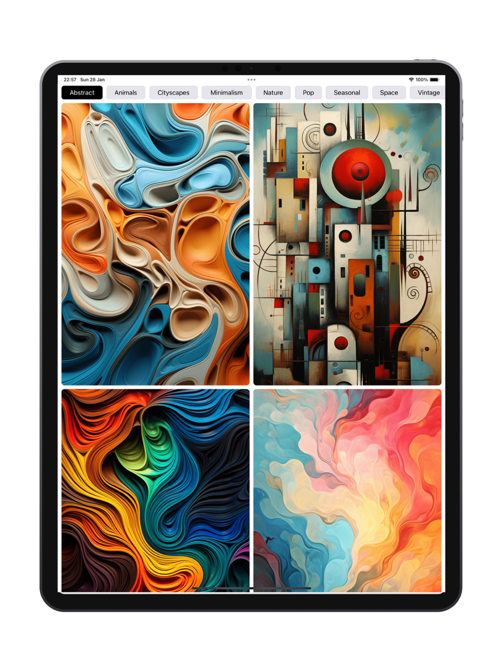 The app offers a wide selection of wallpapers on various themes, including anime, girls, black and white wallpapers, superheroes, dark and light wallpapers, art, winter landscapes, and much more. This allows you to find the perfect background for your device according to your preferences and mood.