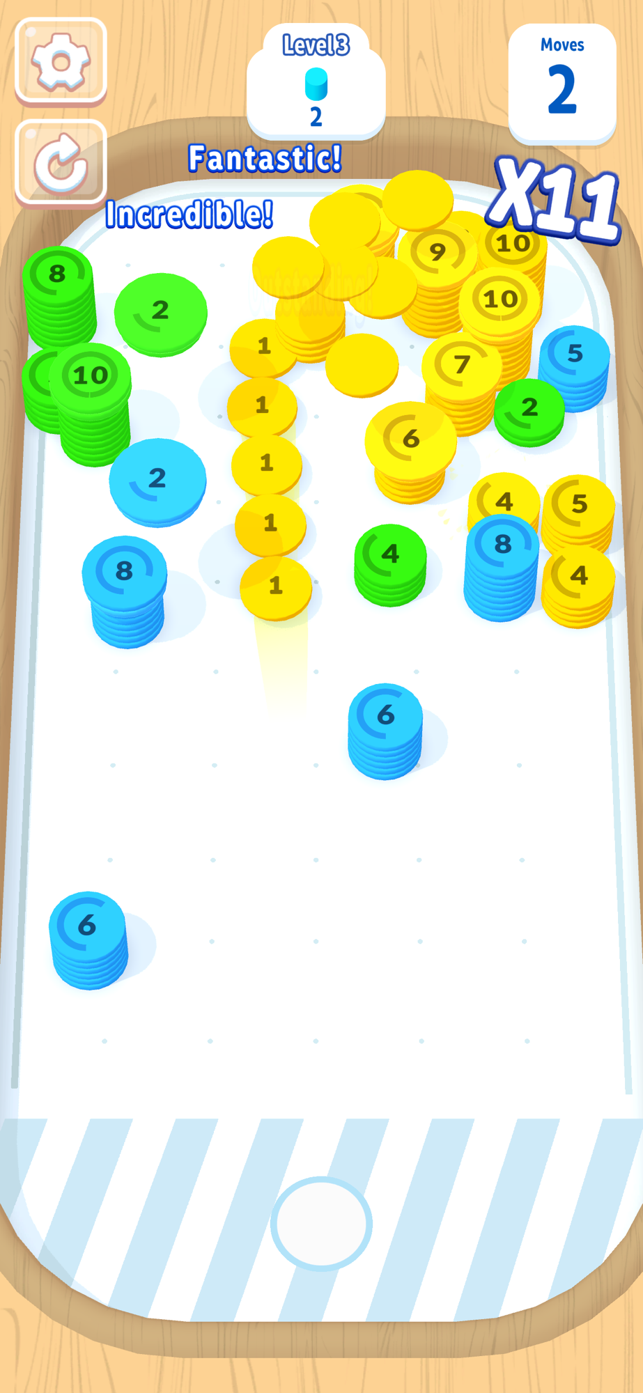 Get ready for 'Tack and Stack', a mind-bending, addictive stacking game that blends color matching with strategic puzzle elements. Perfect for quick play sessions, this family-friendly challenge tests your skills in balance and precision. Engage in this fun stack builder, a colorful brain teaser that evolves into multi-level challenges. A delightful, skill-based gameplay awaits in this interactive strategy game, making every move a mindful puzzler. Join the vibrant adventure in 'Tack and Stack', where strategy and fun meet in a cascade of colors! Free, No wifi required.