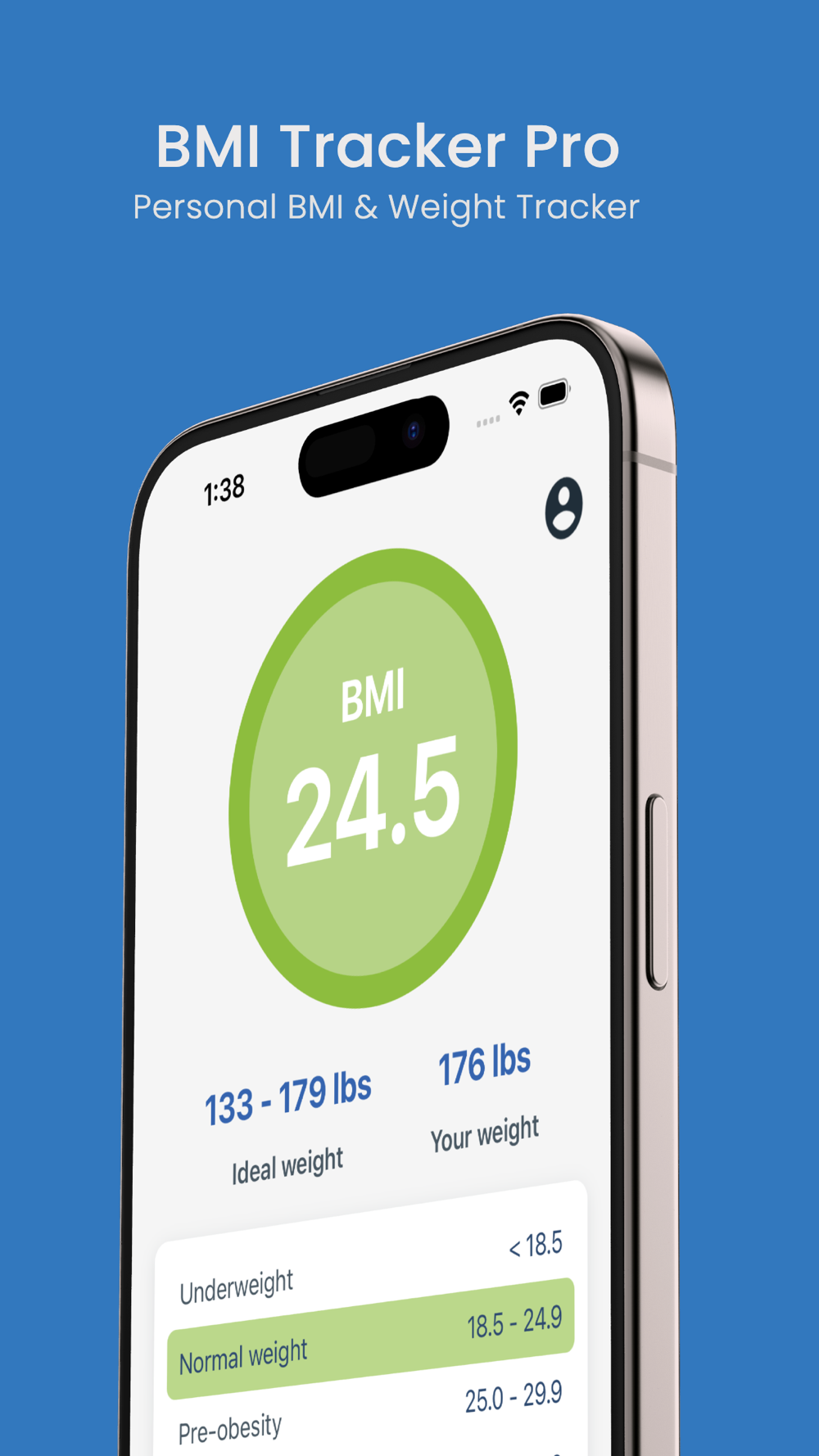 • Accurate BMI Calculation: Your BMI is automatically calculated using the most recent weight and height data from your profile.