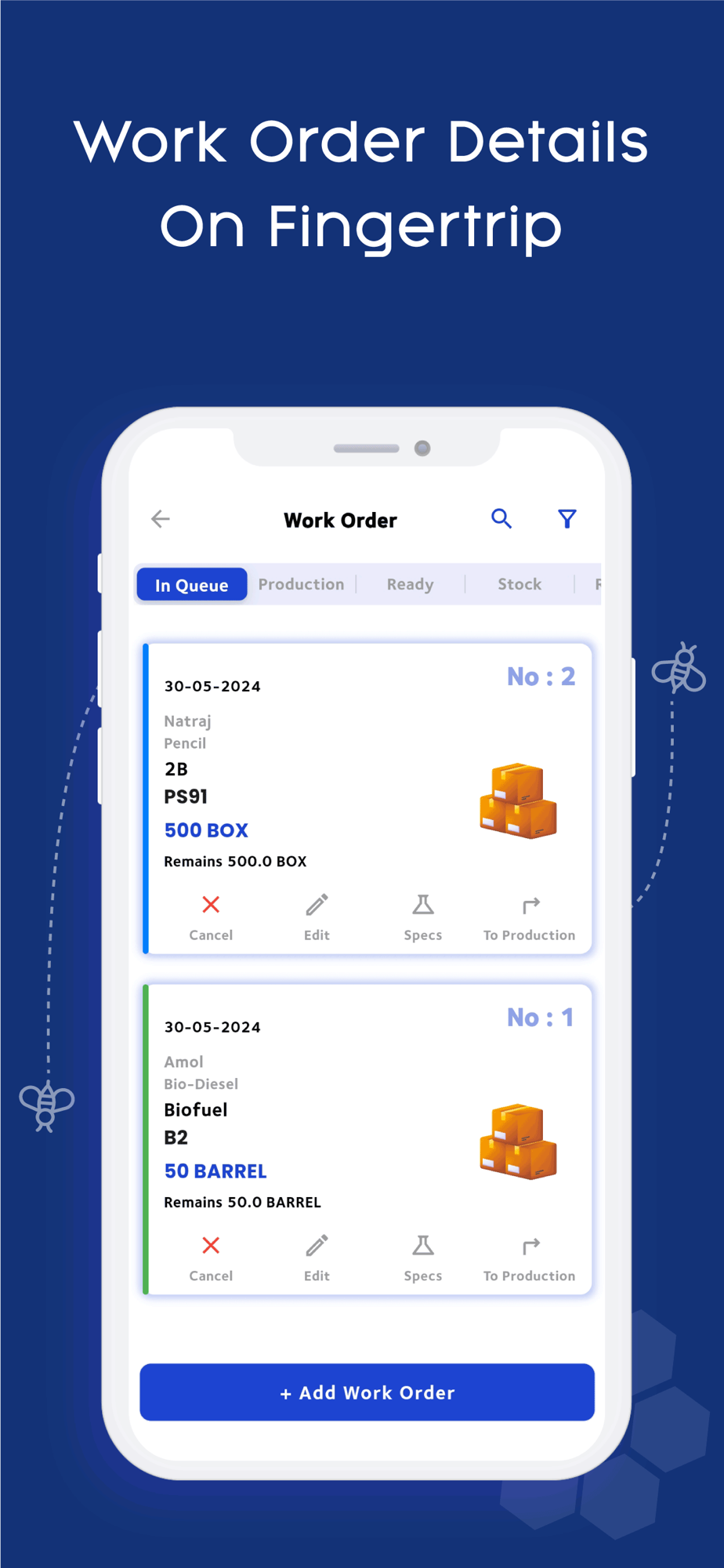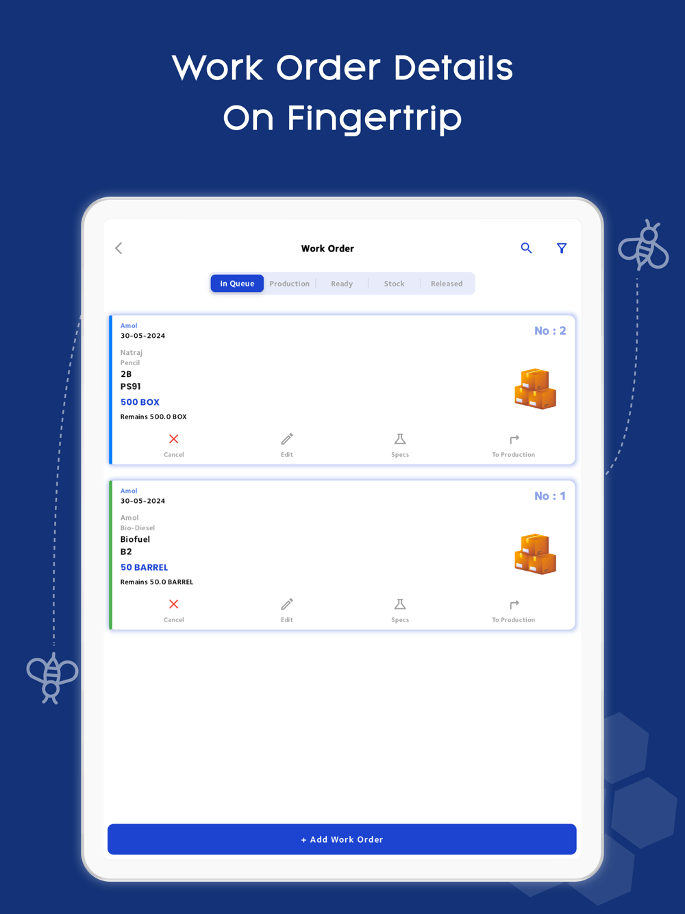 WorkingBee is the Business App for manufacturers, factories, and SMEs. Manage work orders, inventory, production planning, get daily updates, manage accounting, and allocate tasks to subordinates. WorkingBee is a SaaS solution, a mobile app available for iOS.