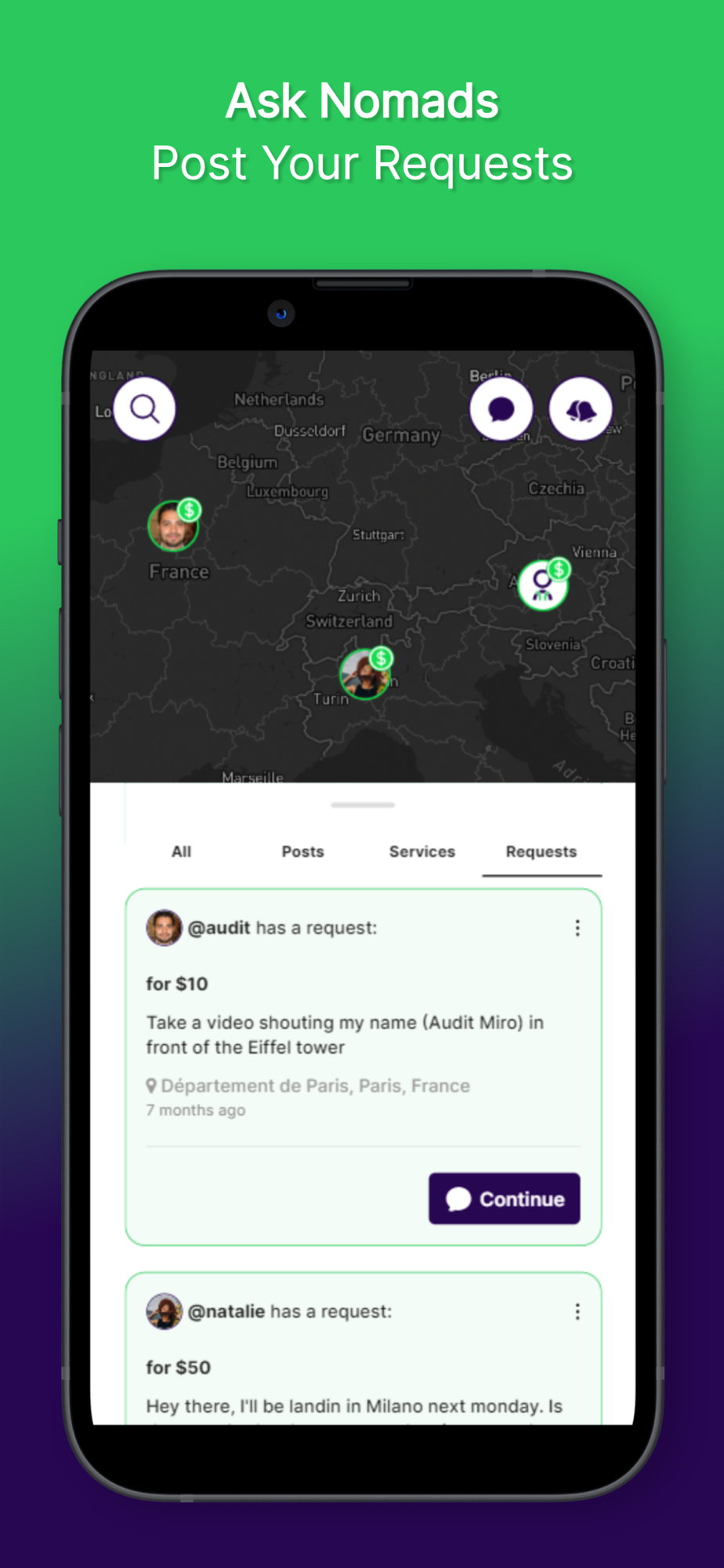 Welcome to NomadsJ, where every journey enriches your life and wallet! Dive into a world where travelers connect through local gigs and unforgettable experiences. Whether you're serenading in front of the Eiffel Tower or coding websites from a beach in Bali, NomadsJ makes it happen. Create offers based on your skills, respond to requests, and earn while you explore. Share your travel stories through photos and videos, engage with a global community, and discover content tailored to your current location on our synchronized world map and feed. Join NomadsJ today and turn your travels into a source of income and inspiration.