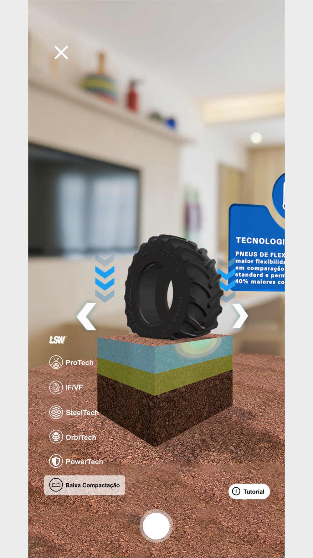 Veja o pneu em tamanho real em sua casa, através da tecnologia de Realidade Aumentada.