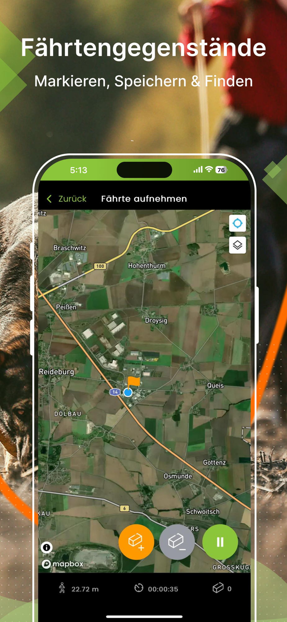 • GPS-gestützte Fährtenaufzeichnung: Erstelle und speichere detaillierte Fährtenverläufe direkt auf deinem Smartphone.