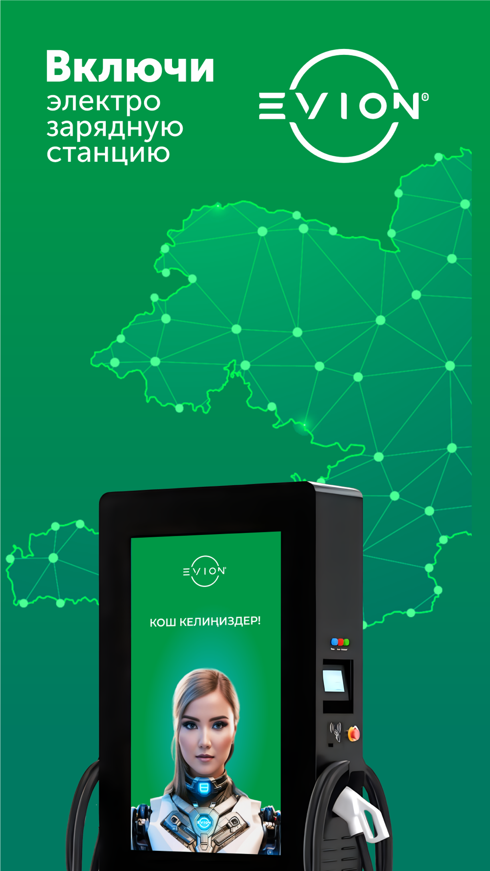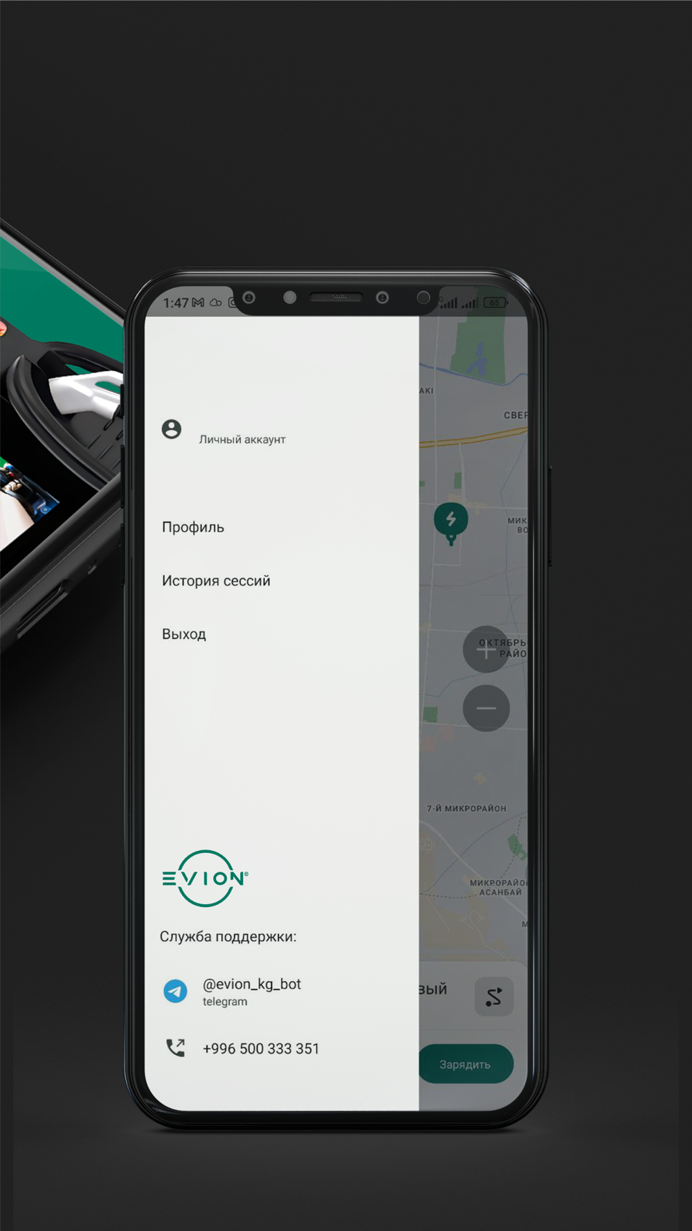 Evion - это инновационное решение для владельцев электромобилей в Кыргызстане, предлагающее удобный и доступный доступ к электрозарядной инфраструктуре. Мы стремимся к экологически чистому будущему, предоставляя надежные услуги зарядки для улучшения качества жизни и защиты окружающей среды. Наше приложение разработано, чтобы обеспечить пользователям легкость доступа к зарядным станциям, упрощая процесс зарядки электромобилей.