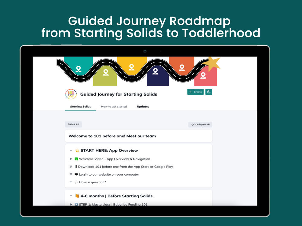 Welcome to 101 before one! We are a team of pediatric experts here to help parents introduce solids to their baby through our signature Family Meals from the Start® program, loved by over 25,000+ families since 2021.