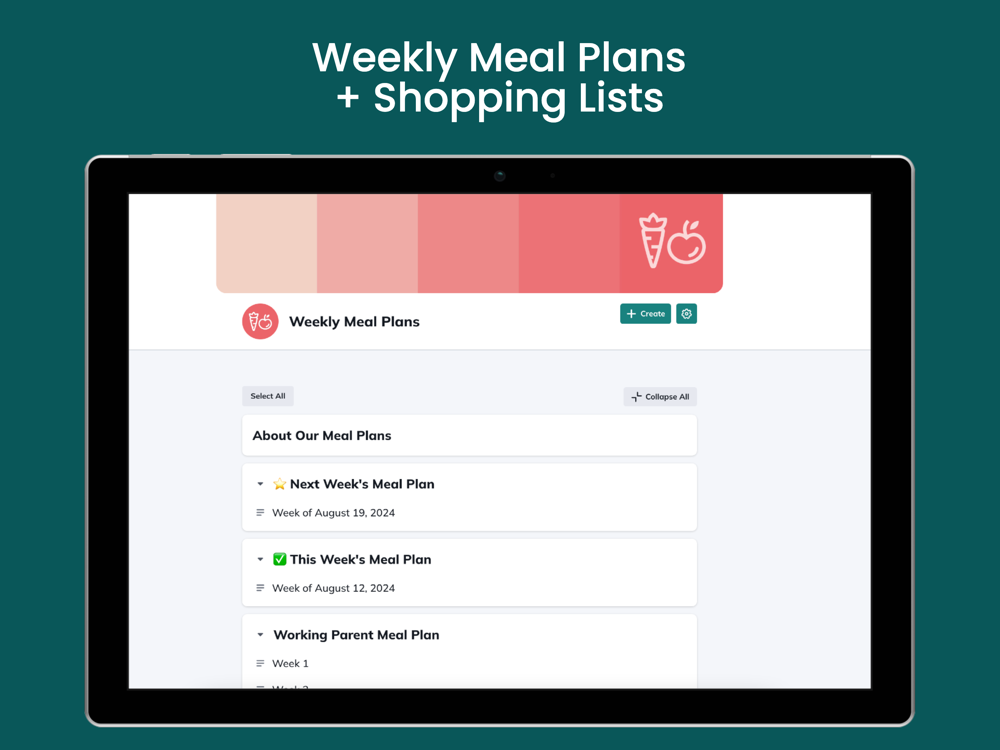 -Get organized with our Weekly Meal Plans & Shopping Lists