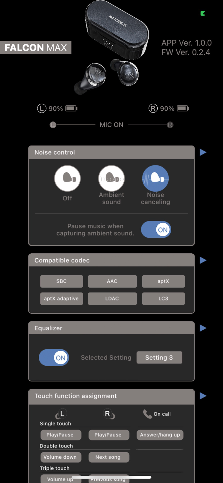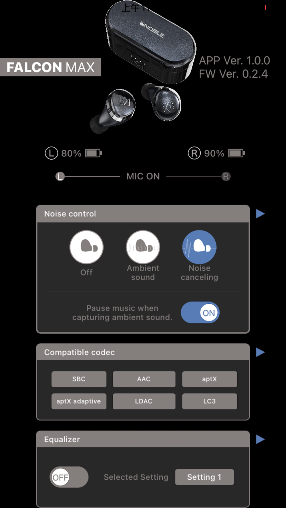 If an earphone is not detected, delete the earphone registration from the terminal, check that there is no other FALCON MAX in the vicinity, and try again.