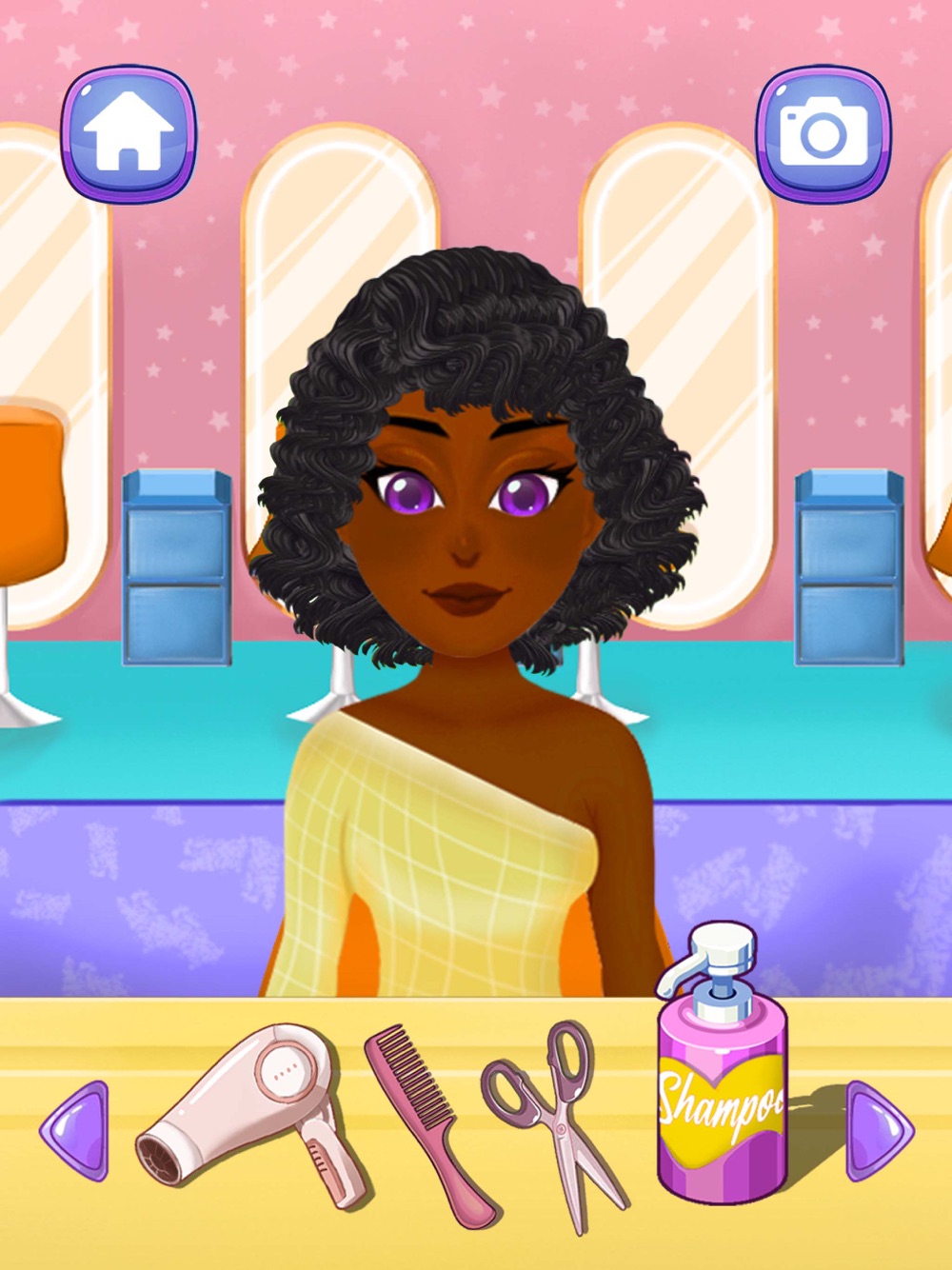 Create cool hairstyles and haircuts, make the hair curly, frizzy or straight, grow it, cut it, wash it, dry it and color it in amazing combinations, add accessories and create a unique look just for you. On this hair salon you can act as a fashion stylist and redesign your model exactly as you wish.