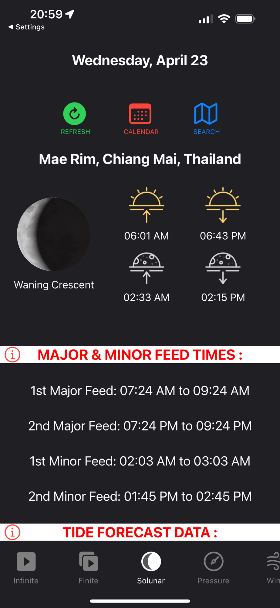 Shows daily weather with 10 day and hourly forecasts for your current location. This data includes wind speed and direction.