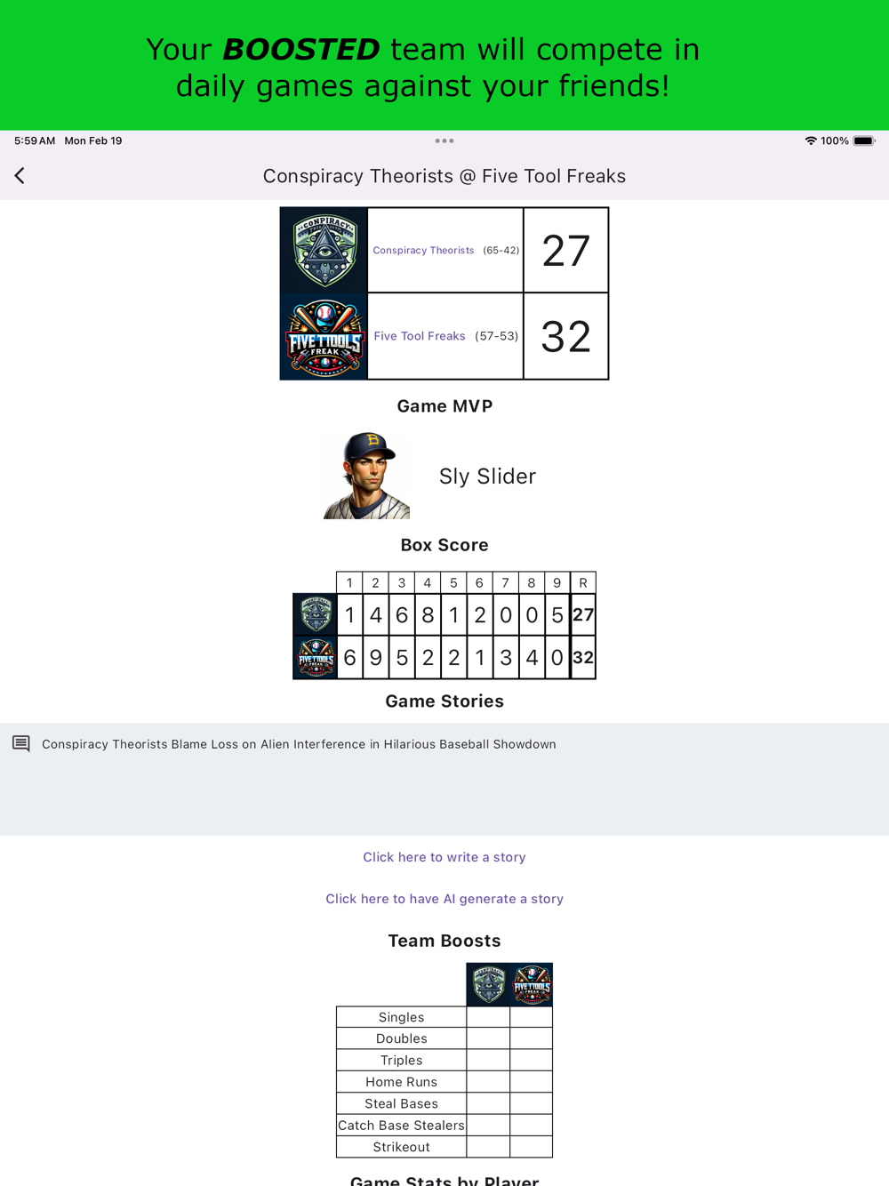 Daily Matches: Engage in head-to-head baseball games against friends' teams every night. The more you move, the more you win.