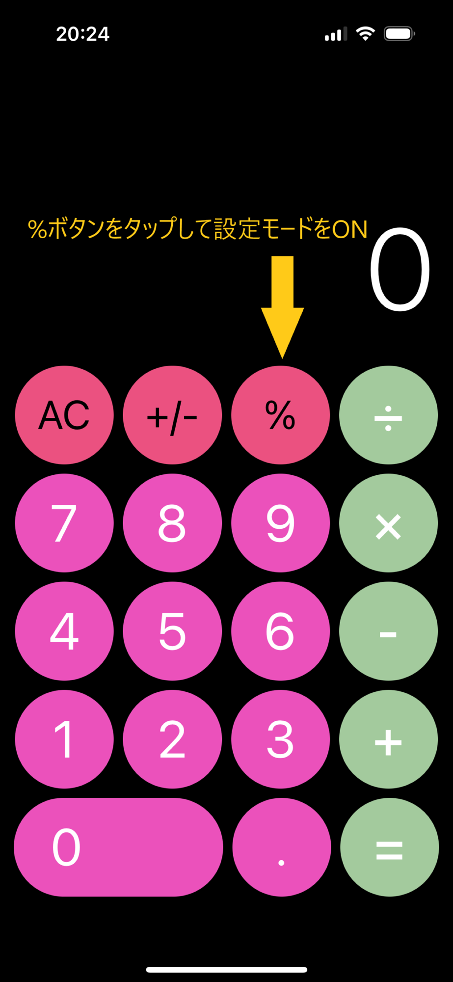 3. もう一度%ボタンをタップ (この時点で設定される)