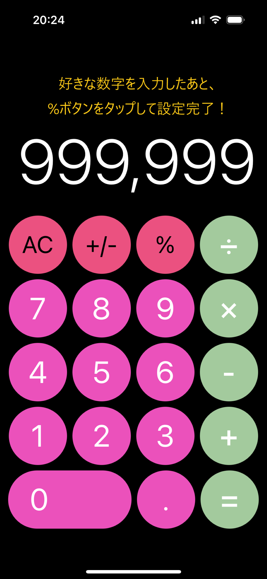 このアプリではあらかじめ設定した好きな数字を計算結果として出すことができます!