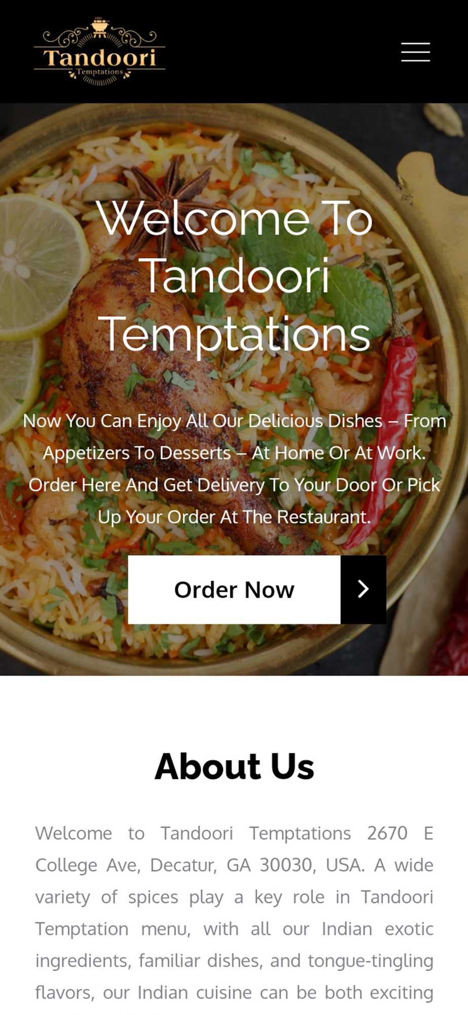 Welcome to Tandoori Temptations 2670 E College Ave, Decatur, GA 30030, USA. A wide variety of spices play a key role in Tandoori Temptation menu, with all our Indian exotic ingredients, familiar dishes, and tongue-tingling flavors, our Indian cuisine can be both exciting and intimidating. “It’s such a complete world of best flavors”. We use the whole palate of flavors - spicy, sour, sweet and hot all at the same time, making it something that wants to jump off the plate and touch your tongue. “Every spice has a reason for being in dish”. The easiest way of bringing the taste of India into your mouth is by ordering online for takeout or we can deliver at your doorstep.