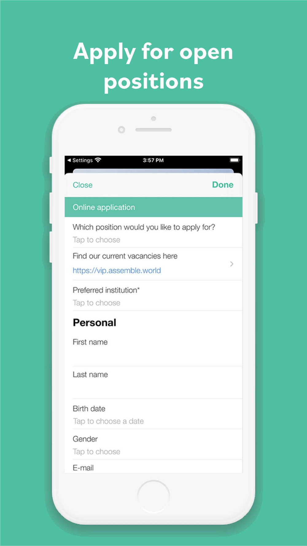 On the front page you can view open positions and apply directly for them with your information, CV and cover letter. The DB @Work app gives you the entrance to work at DBCompanies, with communication and employment contracts directly in the app.